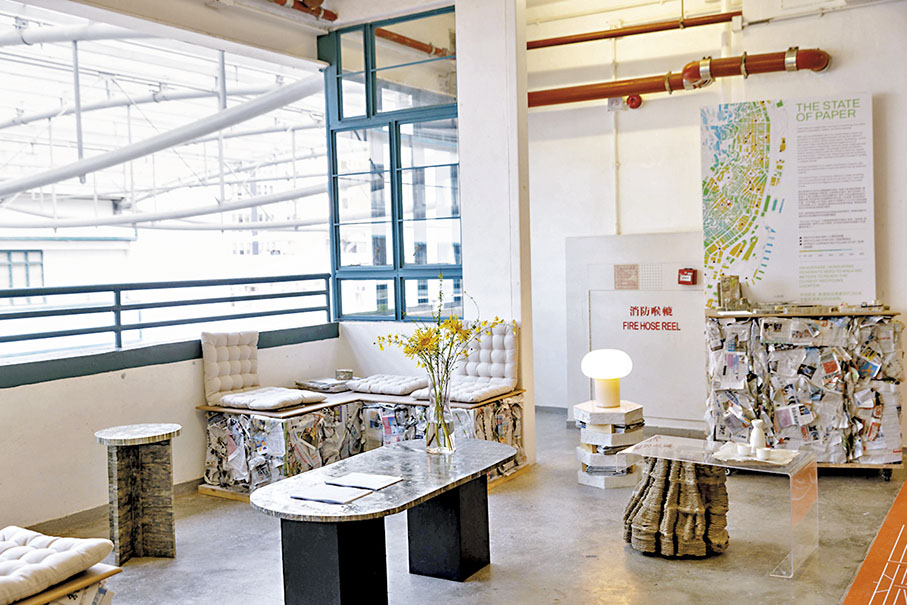 Duy Huynh 和謝祐維團隊關注到香港的紙張消耗情況,希望大眾能正視這個問題。他們以《The State of Paper》展覽參與今屆 deTour,展示紙張在回收後,如何變為再生物料,並製造成不同產品。