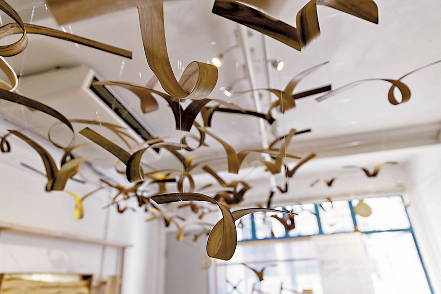 裝置《天然邊》則展示了常被廢棄的材料的再利用,「天然邊」是指一棵樹的外沿部分。天然邊因為色澤略淺,而且木質稍輕,故此一般會直接被裁去棄置。其實天然邊也可加工做成一般傢具,另外,由於質地較為柔軟,經過高溫加工後可改變成彎曲形狀,製作成裝飾品。因此製作團隊MADE 帶來了天然邊製成的傢具,並且把製作過程展示出來。