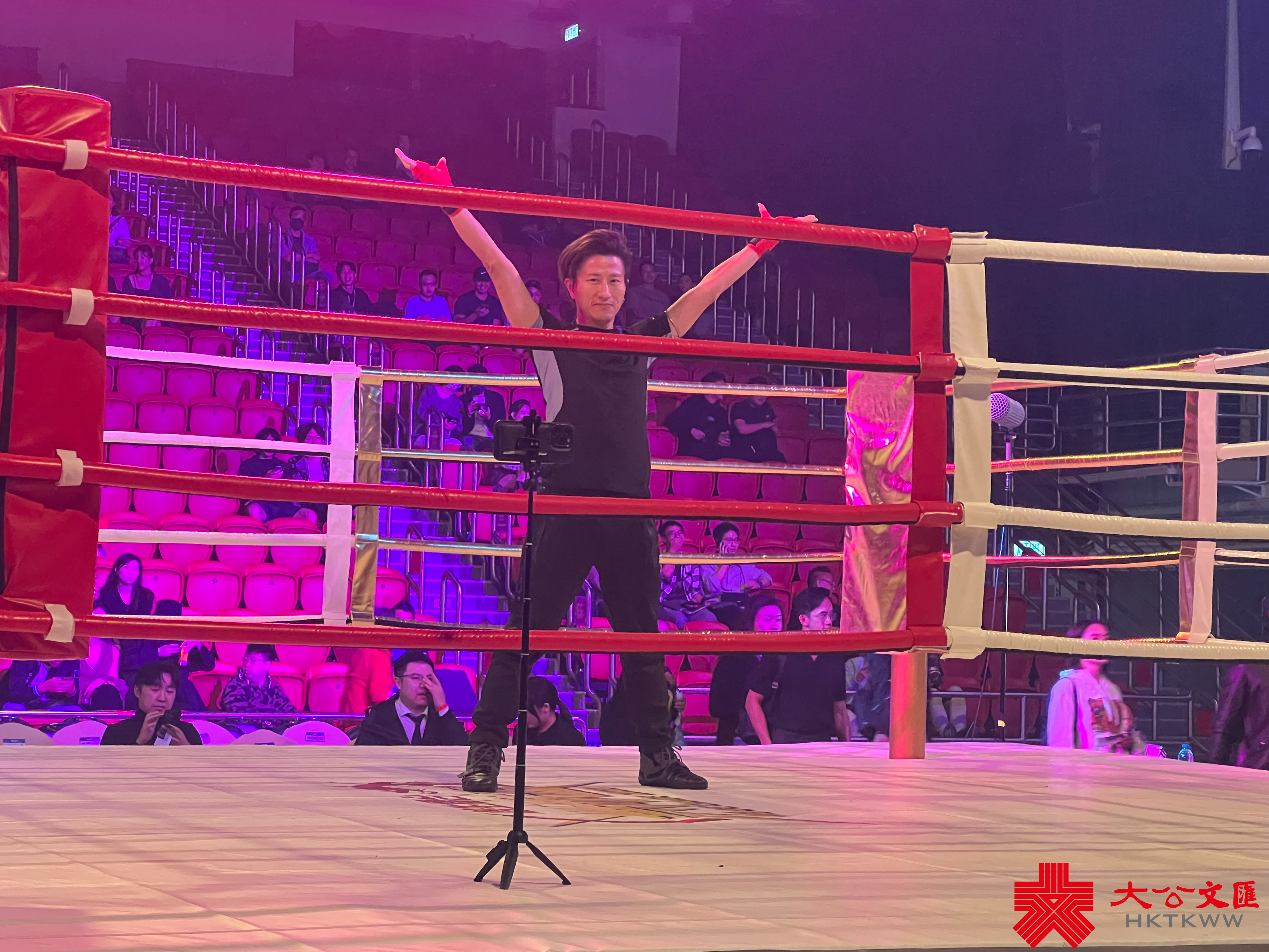 23時50分,比賽結束,觀眾們意猶未盡地走上台前,與拳手合影。