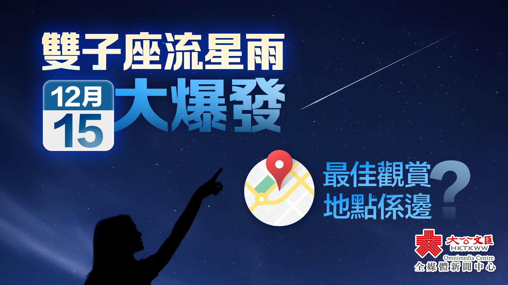 大公文匯全媒體報道,2023年壓軸的一次流星雨現象──雙子座流星雨,將會在本月中上演,若天氣情況許可,大家有機會用肉眼觀賞到壯觀的流星雨。
