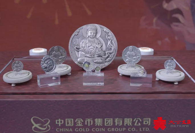 本屆錢博會上,北京開元中國金幣經銷中心有限公司推出了2024中國甲辰(龍)年圓形紀念章。據介紹,該紀念章採用幻彩、高浮雕、曲面、彩印、點彩和做舊等工藝。尤其3克金和30克銀章是國內首次採用新型的全息幻彩工藝鑄造的紀念章,將龍抬頭的動畫栩栩如生地展現出來,創新了造幣工藝。該套紀念章分別採用99.9%足金、99.9%足銀與紫銅打造而成,形狀均為圓形,共計9枚。3克金章與30克銀章正面圖案均採用傳統玉璧形構圖,主體為兩條龍圍繞一顆寶珠畫面,寓意雙龍護主,另刊龍年相關文字元素。3克金章背面圖案為威武神勇的龍頭,30克銀章背面圖案為兩條龍在祥雲中歡騰飛舞、開心互動,寓意飛龍在天、好運吉祥,另刊「龍行大運「文字。仿古銀、銅章的正面圖案均為龍首剪影圖。背景是中國傳統「五福」的吉祥詞語文字鋪成的底紋,並輔以龍年要素和寶珠圖案,寓意生肖龍年五福臨門、吉祥如意。