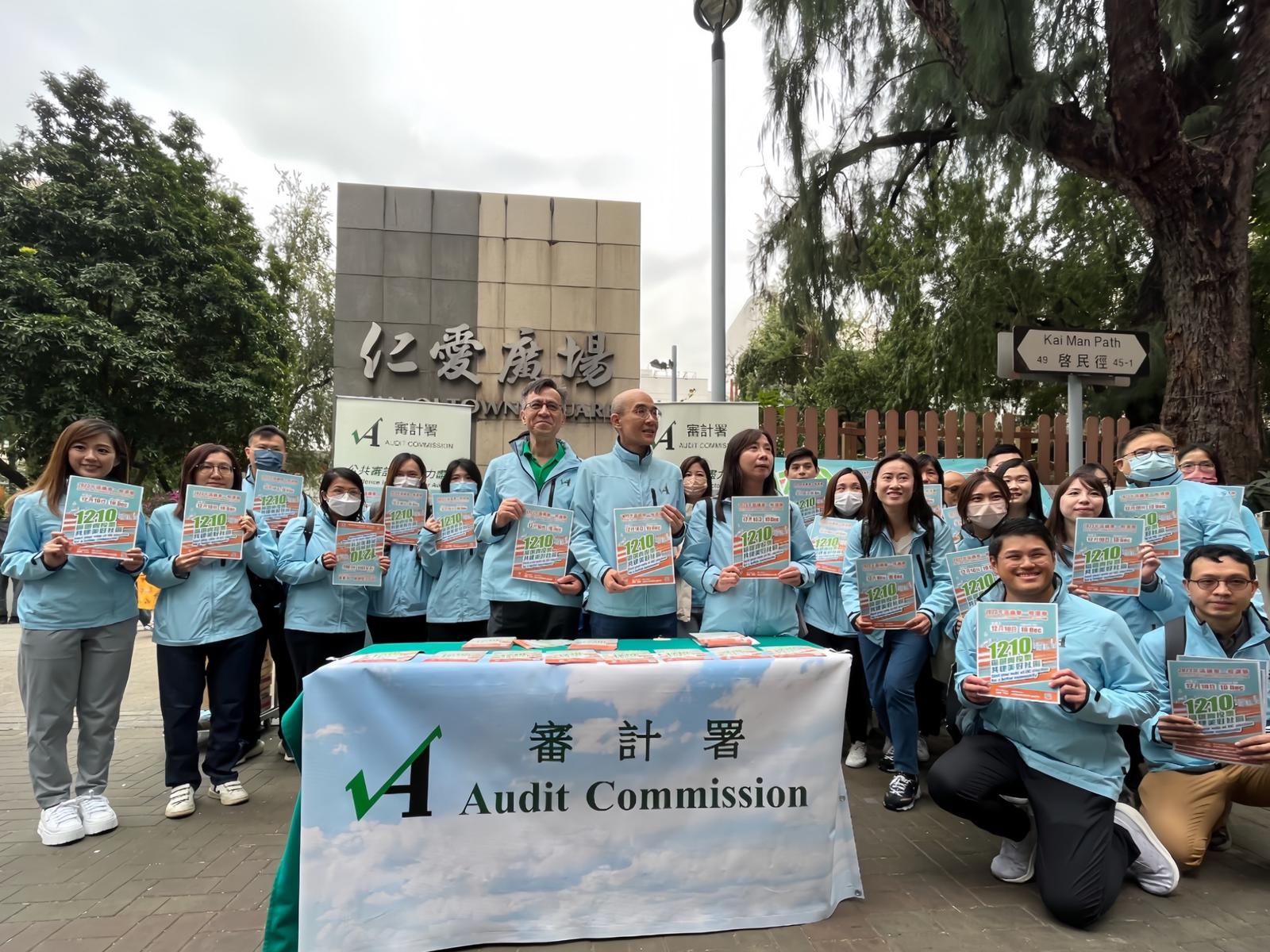 同日下午,近30名審計署人員於屯門仁愛廣場近新墟街市的行人路設置區議會選舉宣傳街站,向市民派發單張,並講解這是完善地區治理後首次區選,意義重大,藉此鼓勵大眾於12月10日區選中踴躍投票。