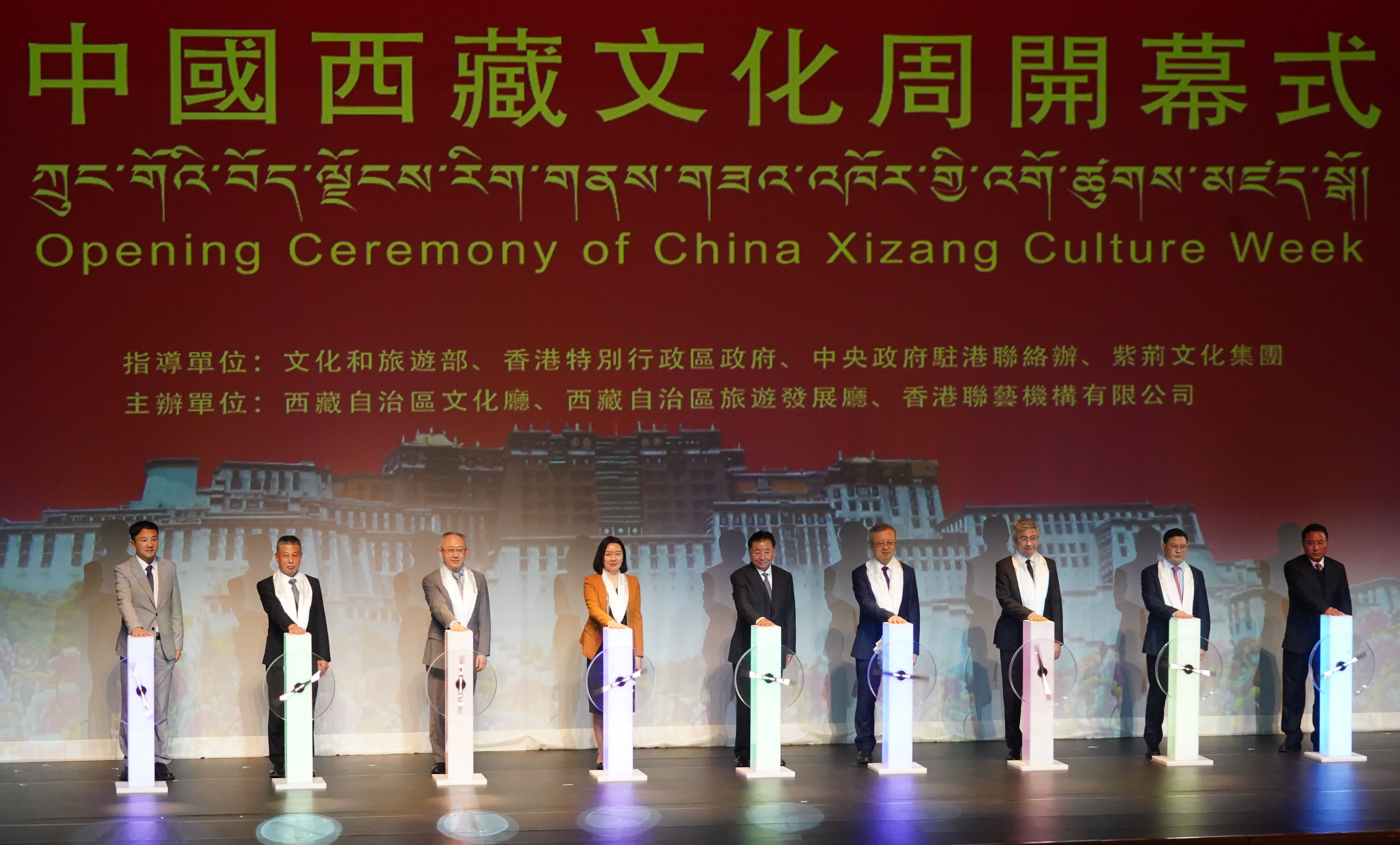 (香港文匯報 記者 張岳悅)為增進港人對雪域高原西藏的了解,推動西藏與香港在文化領域的交流與合作,多維度展現西藏文化的獨特魅力及傳承之美,由國家文化和旅遊部、香港特別行政區政府、中央人民政府駐香港特別行政區聯絡辦公室、紫荊文化集團指導,西藏自治區文化廳、西藏自治區旅遊發展廳、香港聯藝機構有限公司主辦的「中國西藏文化周」開幕典禮及民族歌舞劇《天邊格桑花》首演於昨日(1日)假香港文化中心大劇院舉行。