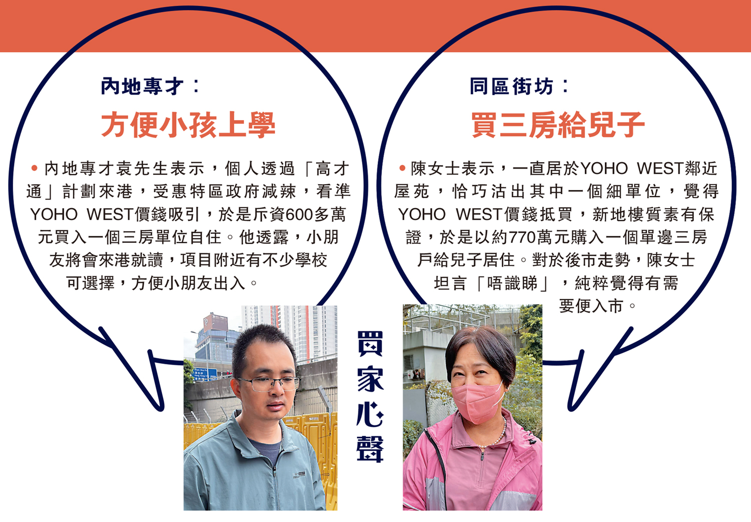 特區政府為吸引專才落戶,合資格外來人才徵收辣稅方式由「先徵後退」改為「先免後徵」,即置業時暫免付辣稅,若其後未成為永久居民,才需繳辣稅。措施推出後,旋即為樓市帶來提振作用,新盤及二手市場均見內地專才入市,成為樓市生力軍。內地專才袁先生透過「高才通」計劃來港,昨日以600多萬元買入YOHO WEST一個三房單位自住。