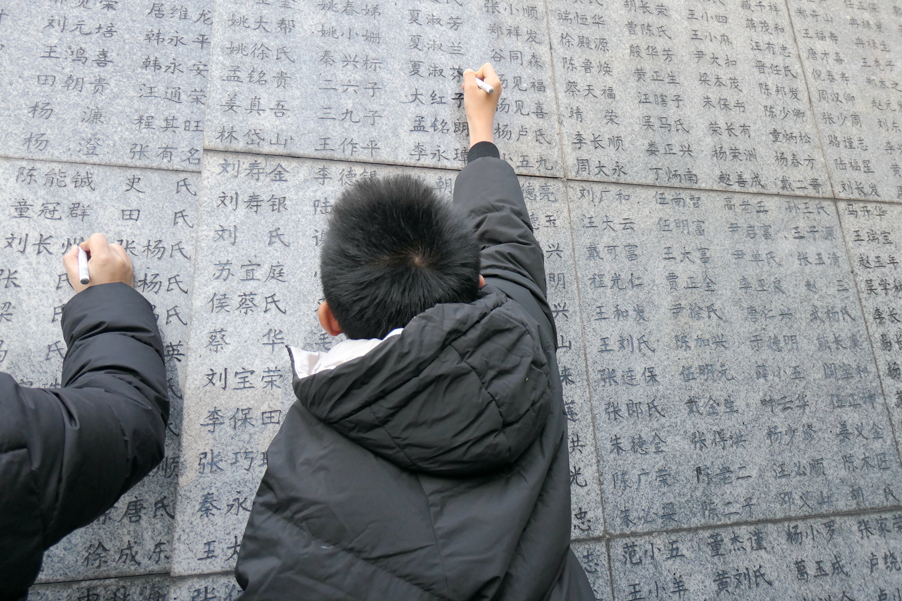 在第十個南京大屠殺死難者國家公祭日即將來臨之際,侵華日軍南京大屠殺遇難同胞紀念館舉行家庭祭告活動,南京大屠殺倖存者夏淑琴、艾義英、劉民生老人及其他倖存者後代,紀念館員工和南京青少年代表依次向「哭牆」獻花、鞠躬,並用筆給「哭牆」上鐫刻的遇難者姓名「描新」,以此緬懷死難親人和同胞。