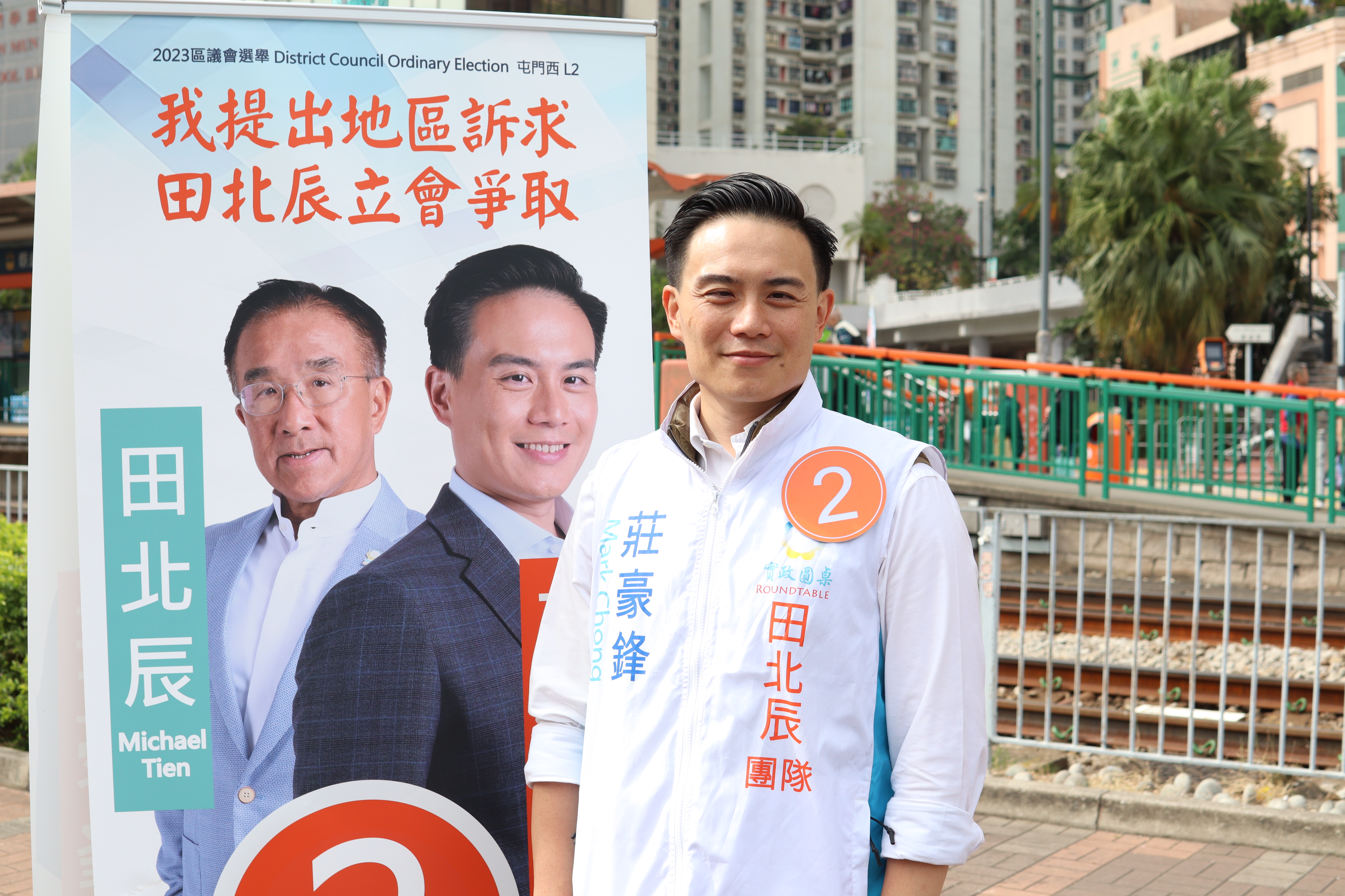 在輕鐵河田站,記者見到莊豪鋒,他表示,面對社區內「老舊難」問題,莊豪鋒與立法會議員田北辰裏應外合,由他負責為地區「把脈」,再將意見「貼地」地反映給立法會,從而幫地區解決問題。此外,他在立法會一路跟進龍鼓灘發展、第五條跨海鐵路及屯門南延綫等議題。電子及電訊工程專業出身的莊豪鋒,亦希望利用其在資訊科技和電訊的豐富經驗,減低電信詐騙對市民造成的滋擾。