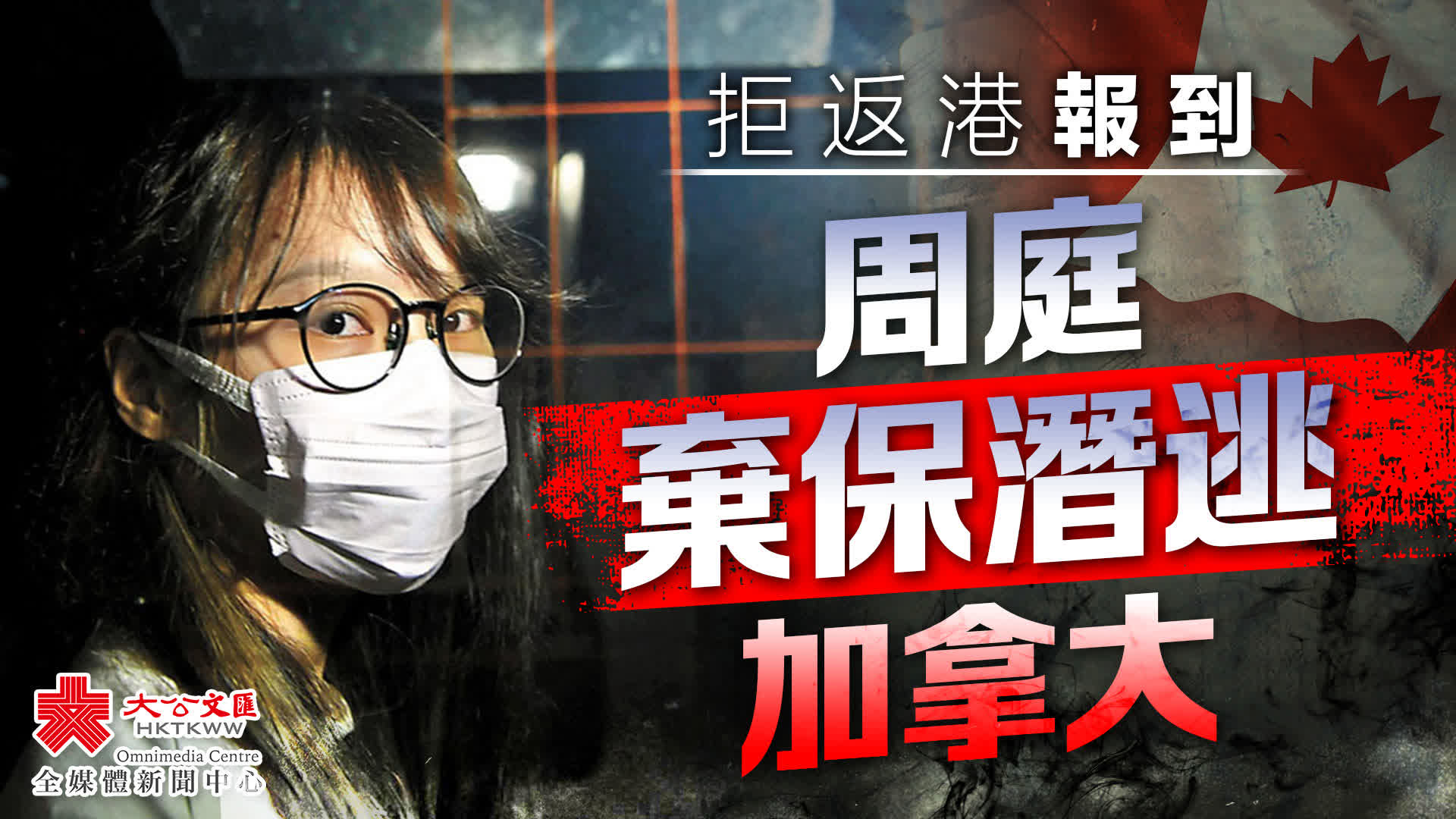 (香港文匯報 記者 蕭景源)「港獨」組織、前「香港眾志」副秘書長周庭因2019年參與包圍警察總部,2020年底被判入獄10個月,她於2021年刑滿出獄後,仍須就一宗勾結外國或境外勢力案,遵守擔保條件交出旅遊證件,定期報到及不能出境;惟其借往加拿大讀書為名,今年9月獲警方國安處發還旅遊證件批准離港,但須遵從本月底返港報到的條件。昨晚,周庭突然反口,竟在社交網站公開高調預告不會返港向警方報到,變相宣布棄保潛逃。