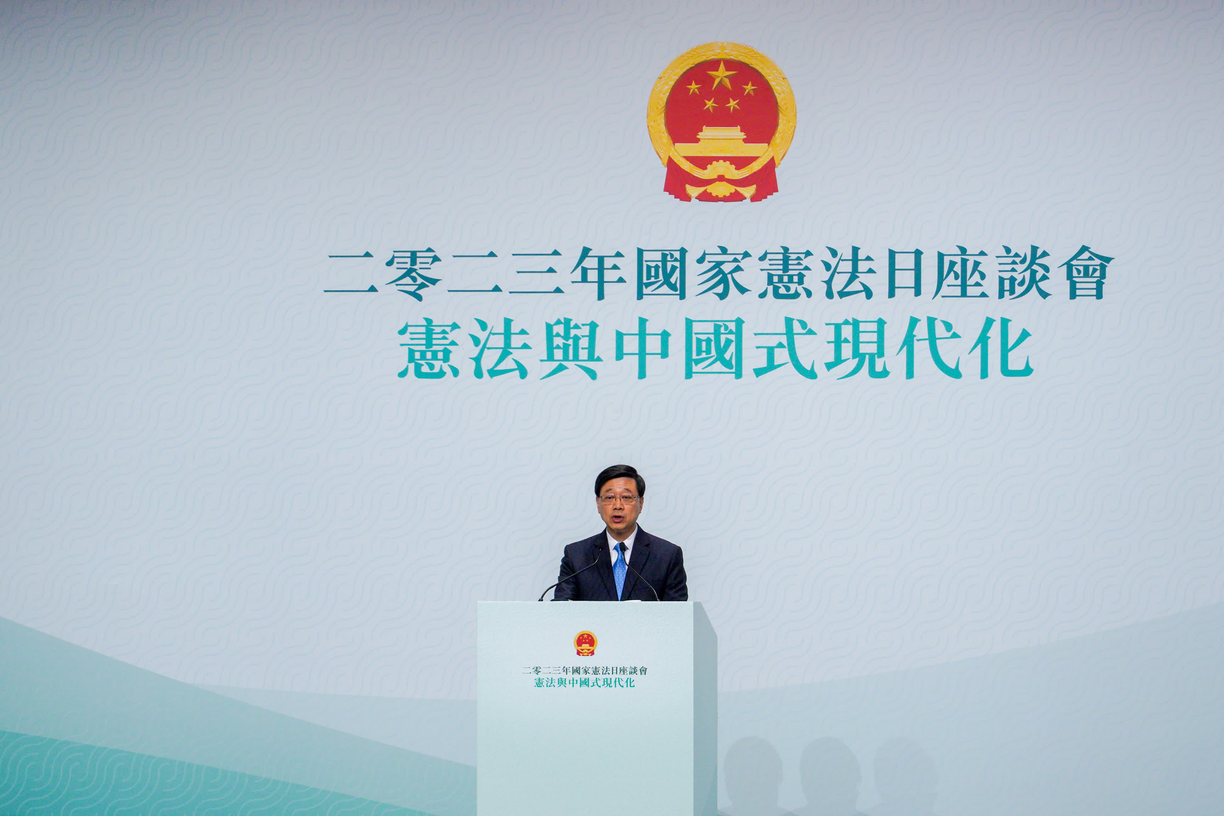 (大公文匯全媒體記者 馮書朋)每年12月4日是國家憲法日。今日(4日)上午特區政府聯同中央政府駐港聯絡辦合辦「國家憲法日」座談會,並由勵進教育中心擔任支持機構,以令社會各界加深認識國家和香港特區的憲制基礎。行政長官李家超致辭時表示,今日座談會的主題是「憲法與中國式現代化」,中國式現代化既有各國現代化的共同特徵,更有基於我們自身國情的中國特色,在二十大報告內所列舉的中國式現代化特徵之一是人口規模巨大的現代化、中國14億人口整體邁進現代化社會,規模超過現有發達國家人口的總和,是前所未有的重要進程。