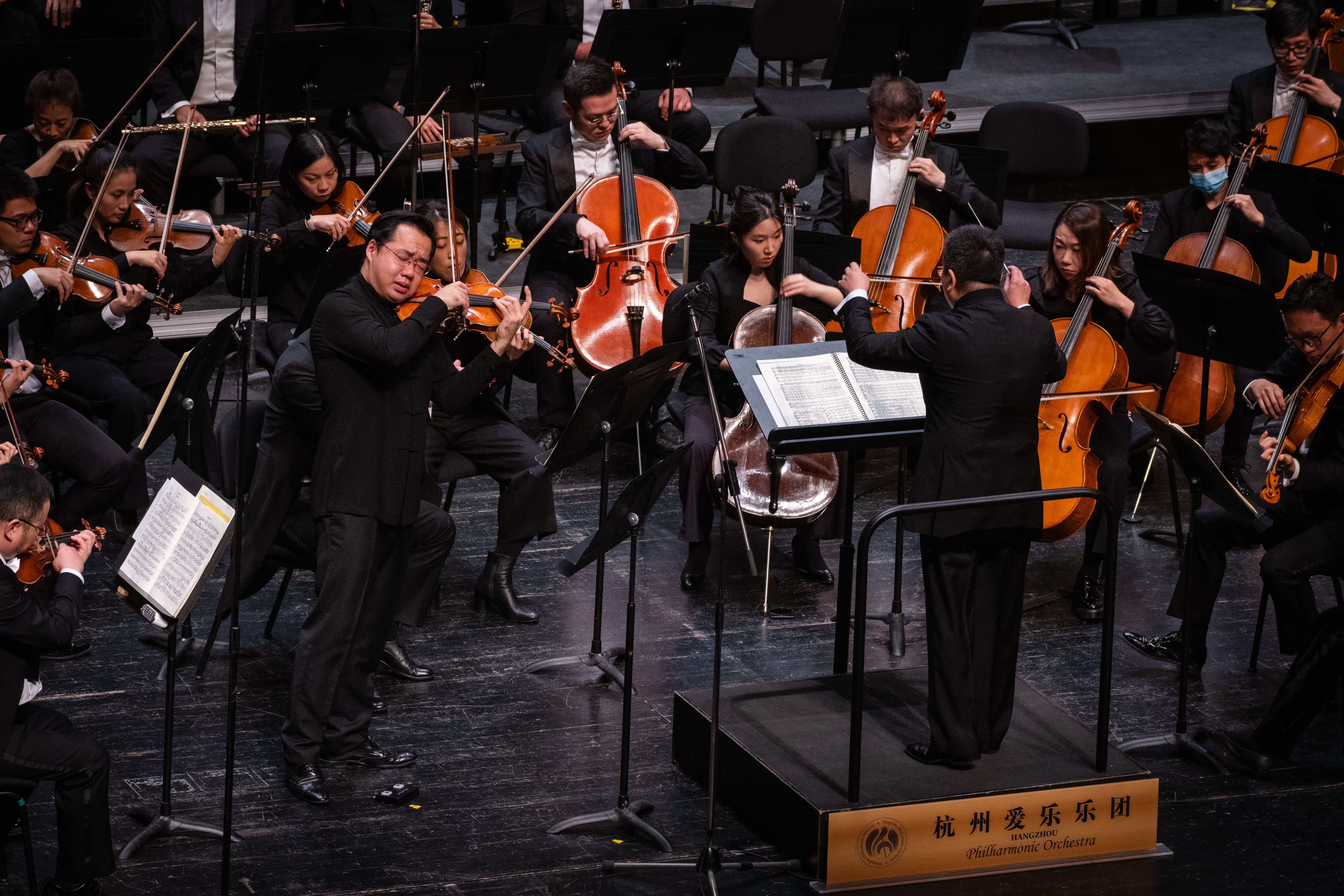 當晚,指揮楊洋、小提琴寧峰,加之杭州愛樂樂團整個樂隊,三者近十五年的演奏合作,熟悉度和配合度溢於言表。樂團成立之初,首任樂季駐團藝術家便是寧峰。