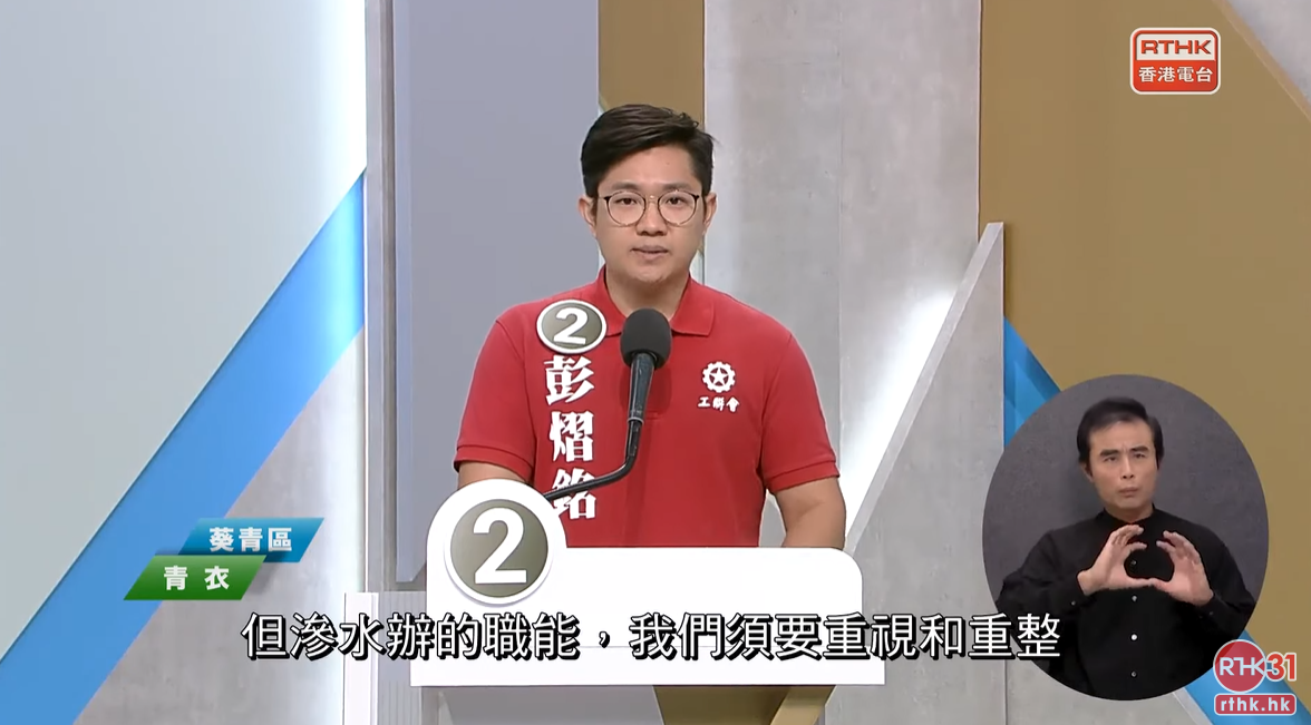 就加強租置屋邨的管理,2號候選人彭熠銘表示,過去曾處理不少相關個案,當中滲水問題佔最多,認為政府需要進一步優化滲水辦職能,他會聯同工聯會前輩,要求滲水辦重整架構及職能。