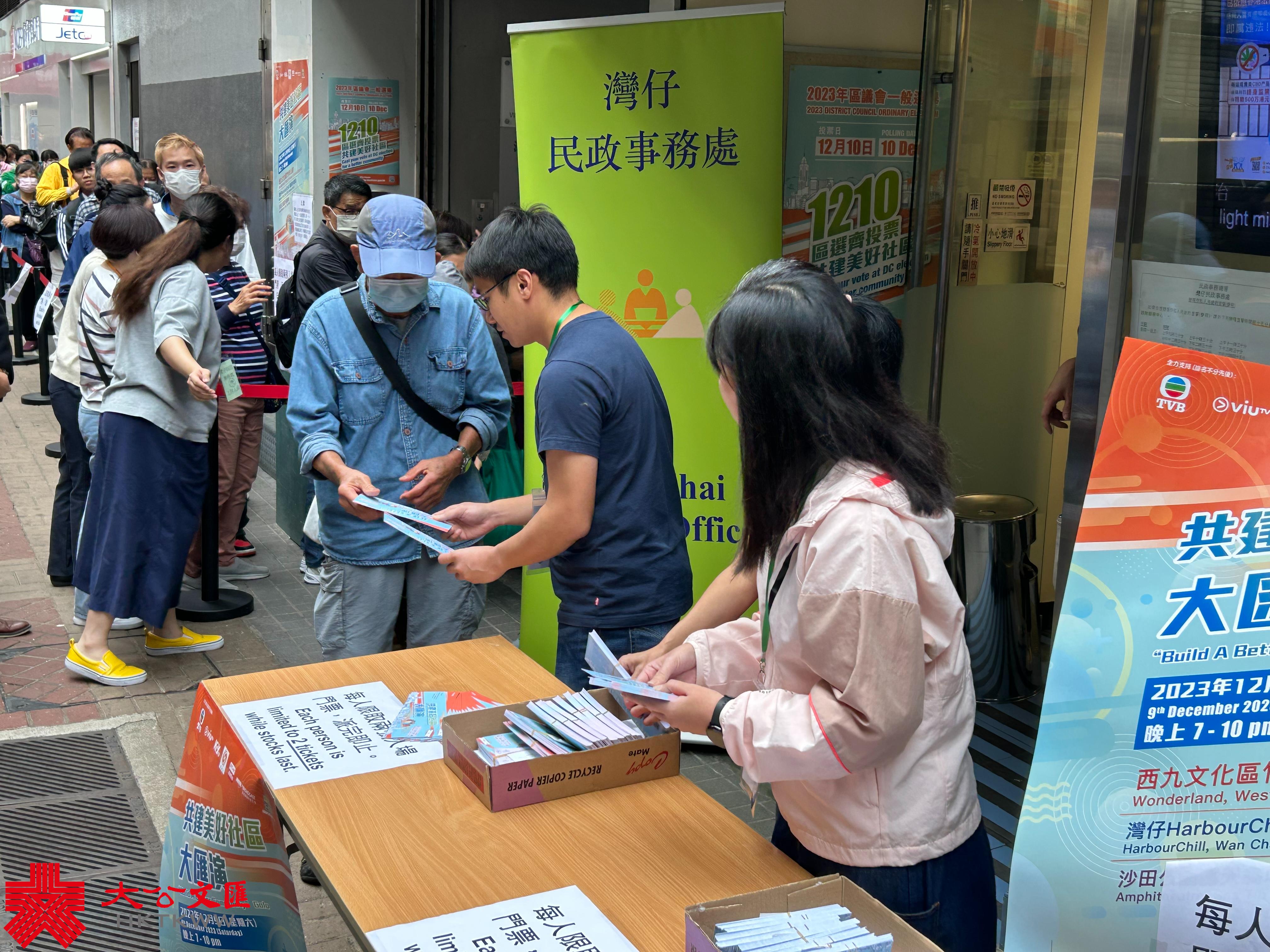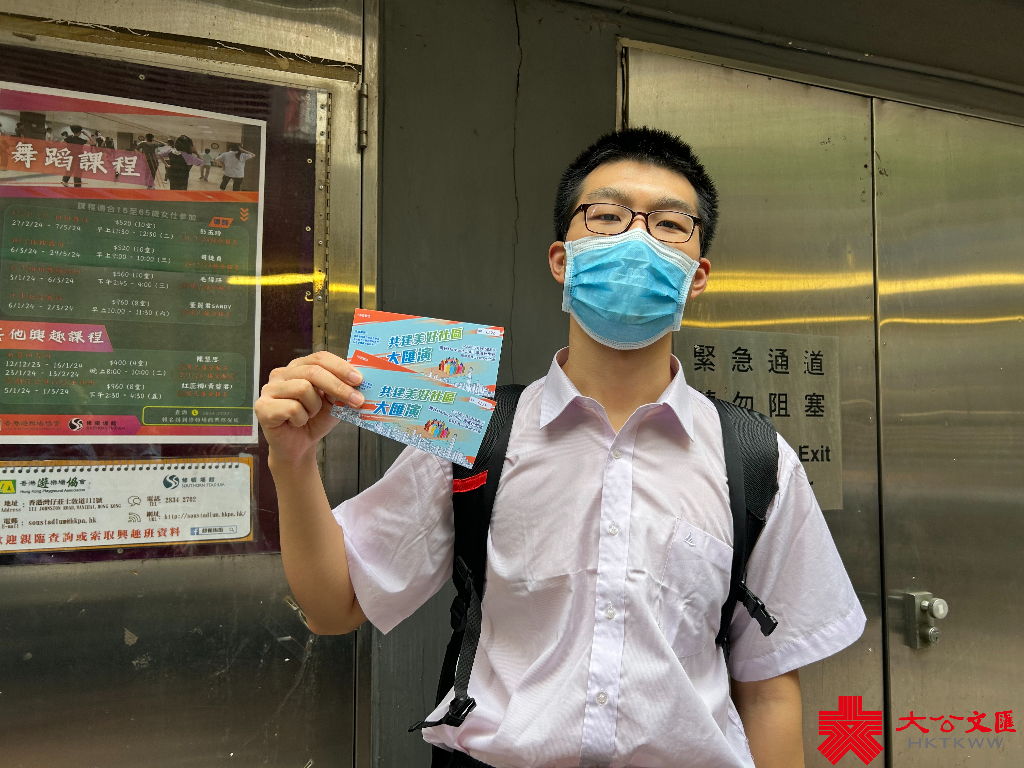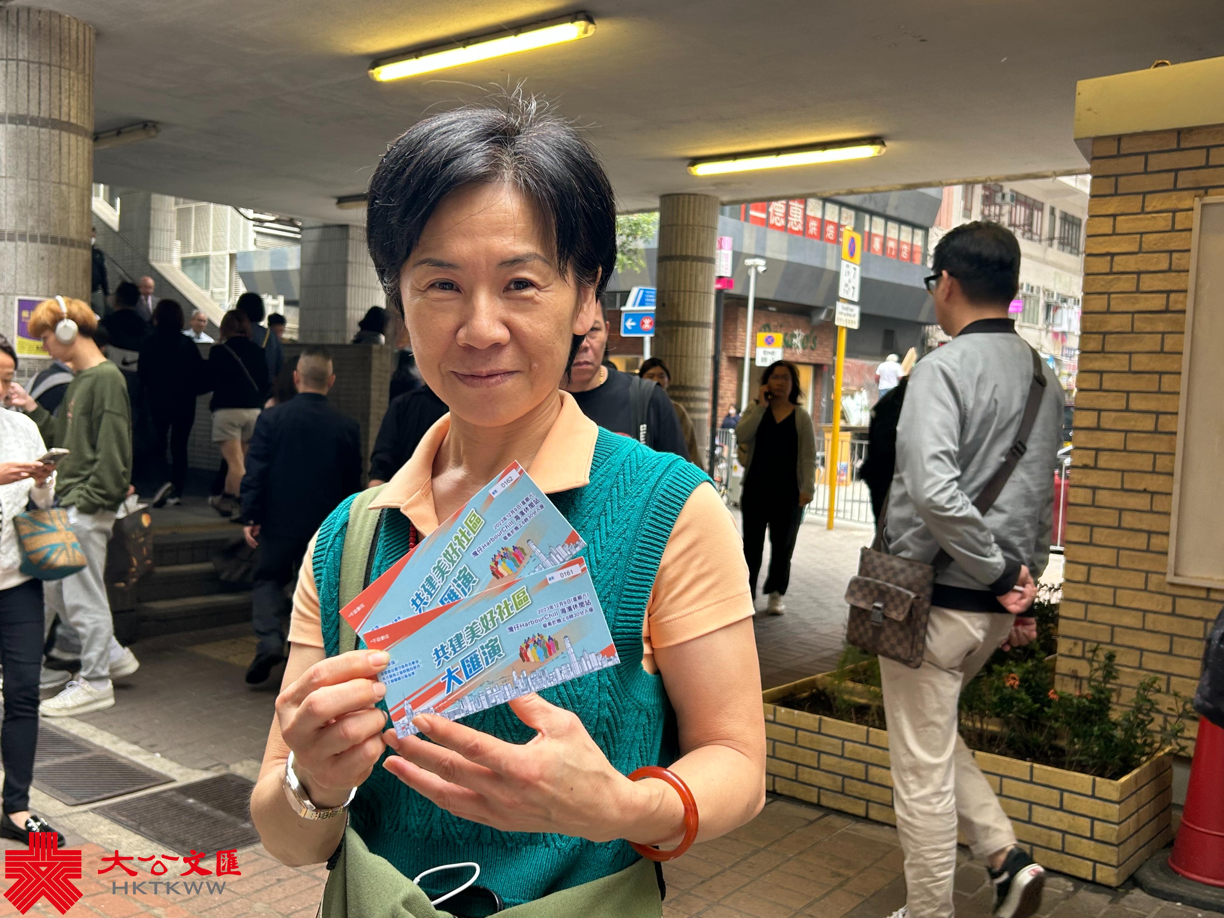 市民姚女士則拿到灣仔衛星場地的入場券,她表示,作為普通市民,她平時對於選舉相關的信息了解不多,但通過政府舉辦的大匯演及相關宣傳活動,能令她了解更多。她相信通過此類活動,能讓更多市民參與區選投票,而她作為選民,亦會在12月10日當天投票。