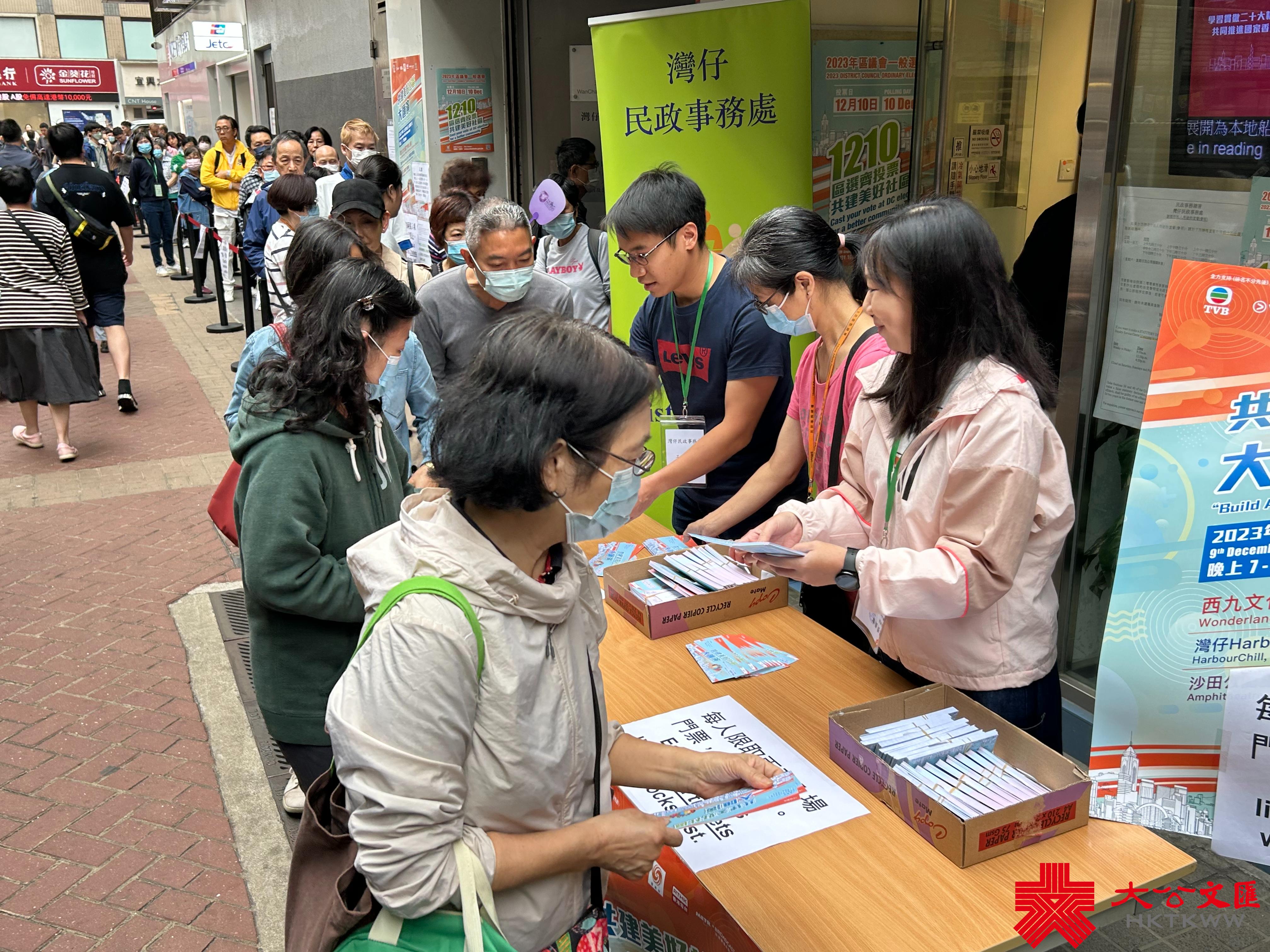 大公文匯全媒體報道,2023年區議會選舉12月10日(星期日)舉行,特區政府將於周六晚舉行大型戶外音樂會「共建美好社區大匯演」,今日(6日)下午1時起開始派飛。民政事務總署下午約6時宣布,「共建美好社區大匯演」各場地的免費入場券已經全部派出。