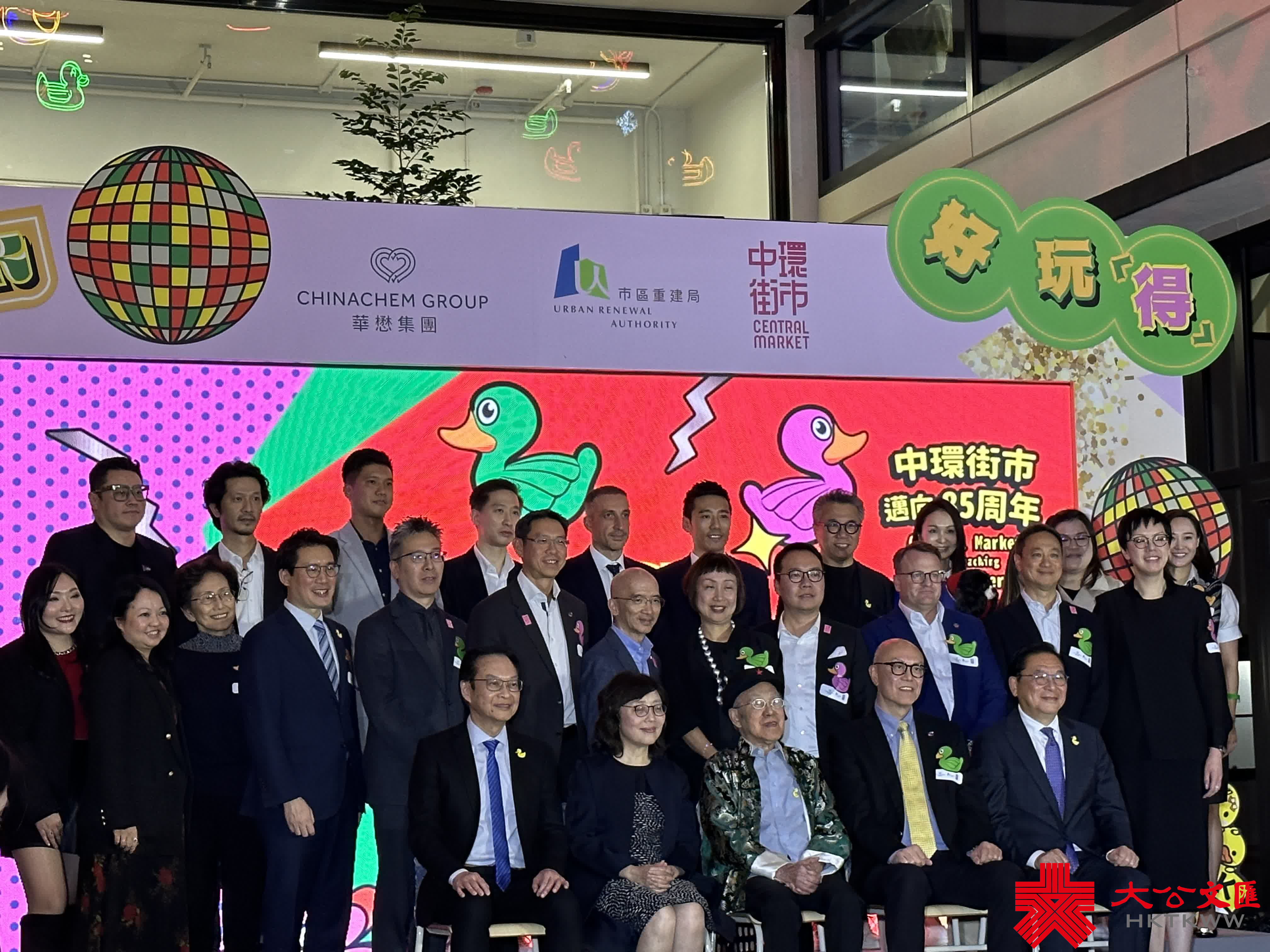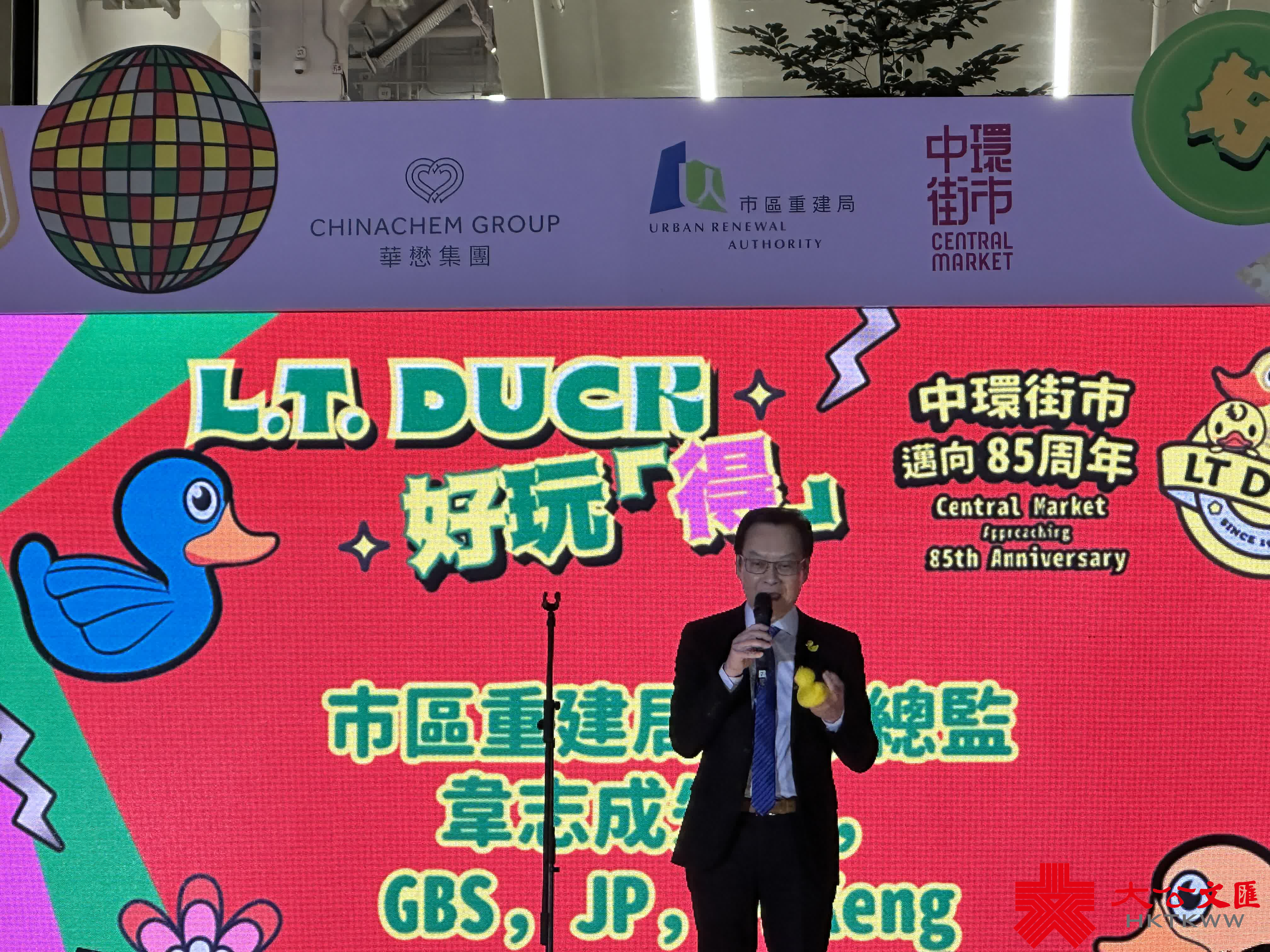 (大公文匯全媒體記者 方正)即日起至聖誕期間,中環街市將有「多只」小黃鴨來襲!聖誕跨媒體展覽L.T. Duck 好玩「得」將於中環街市一樓展出多只港人的童年回憶「小黃鴨」。中環街市今日(6日)舉辦展覽啟動禮暨「小黃鴨之父」林亮100歲壽辰慶典、中環街市85周年及重塑2周年慶典。現場多位政商界人士以及林亮兒子、立法會議員林健鋒陪同林亮主持揭幕儀式,一同唱生日歌及拍攝合照。