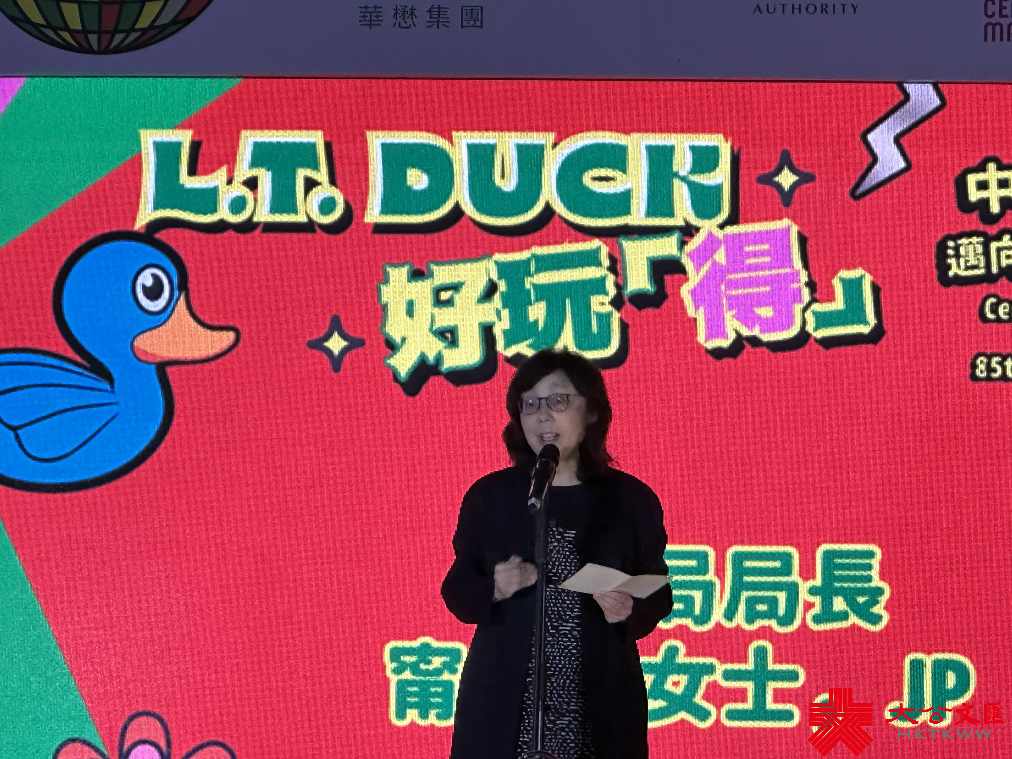 發展局局長甯漢豪在致辭中肯定林亮對香港玩具業、軟實力的貢獻。她形容,沒有一個香港人不認識小黃鴨。甯漢豪同時肯定,活化後的中環街市令人耳目一新,即將邁向85周年,不但積極響應政府「夜繽紛」,白天都做得有聲有色。她表示,在聖誕期間登場的「小黃鴨」結合創新科技,相信會帶給大家不一樣的藝術展覽體驗。最後,她呼籲在場人士帶着「小黃鴨精神」周日參加區議會投票。