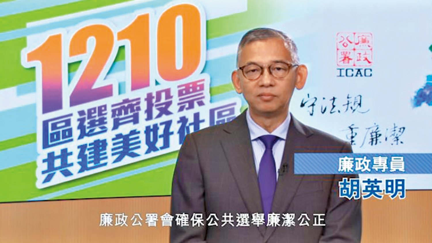 胡英明重申,公開煽惑他人不投票或投無效票屬違法行為,可被判監,市民應嚴守法規,維護廉潔選舉。胡並指,廉署於投票日會派出超過900人駐守票站,即時處理市民查詢和投訴。