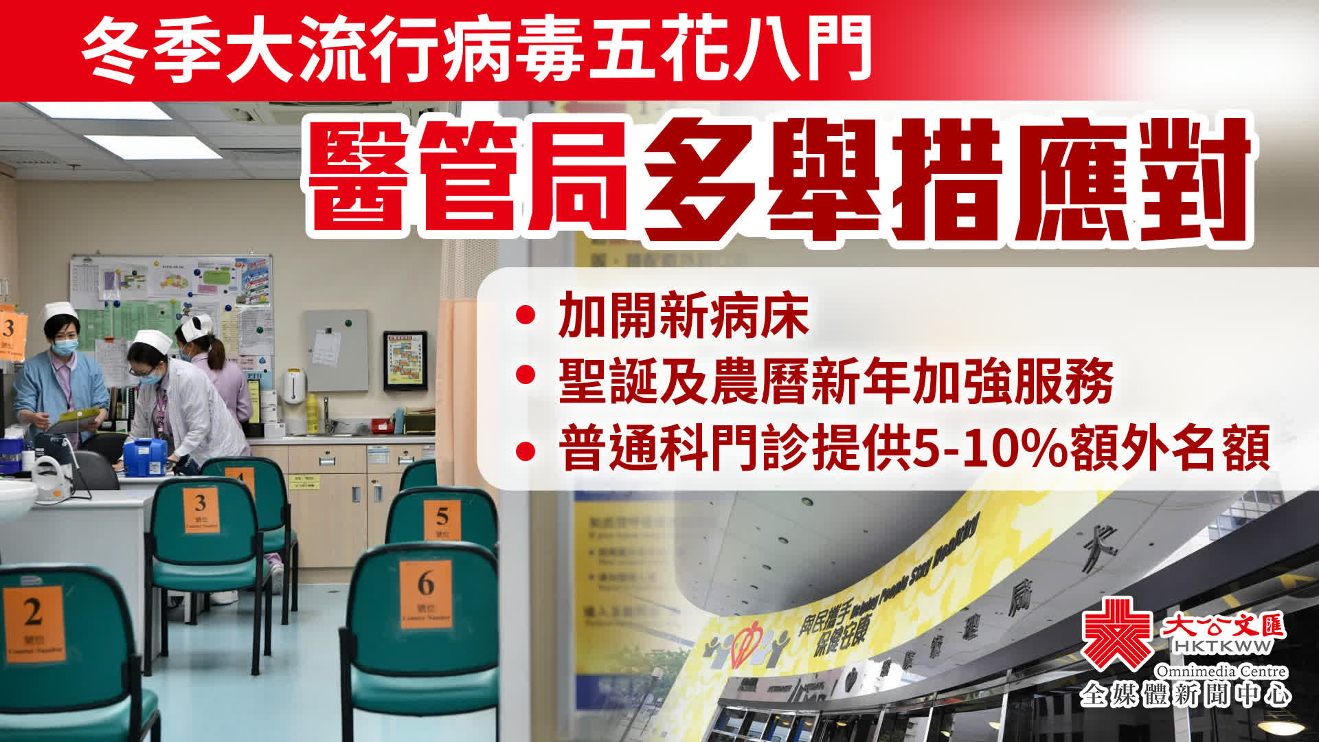 (大公文匯全媒體 記者 周傾芫)醫管局今日(8日)召開記者會,表示預計將會進入冬季流感高峰期,會增加人手及加開病床應對。