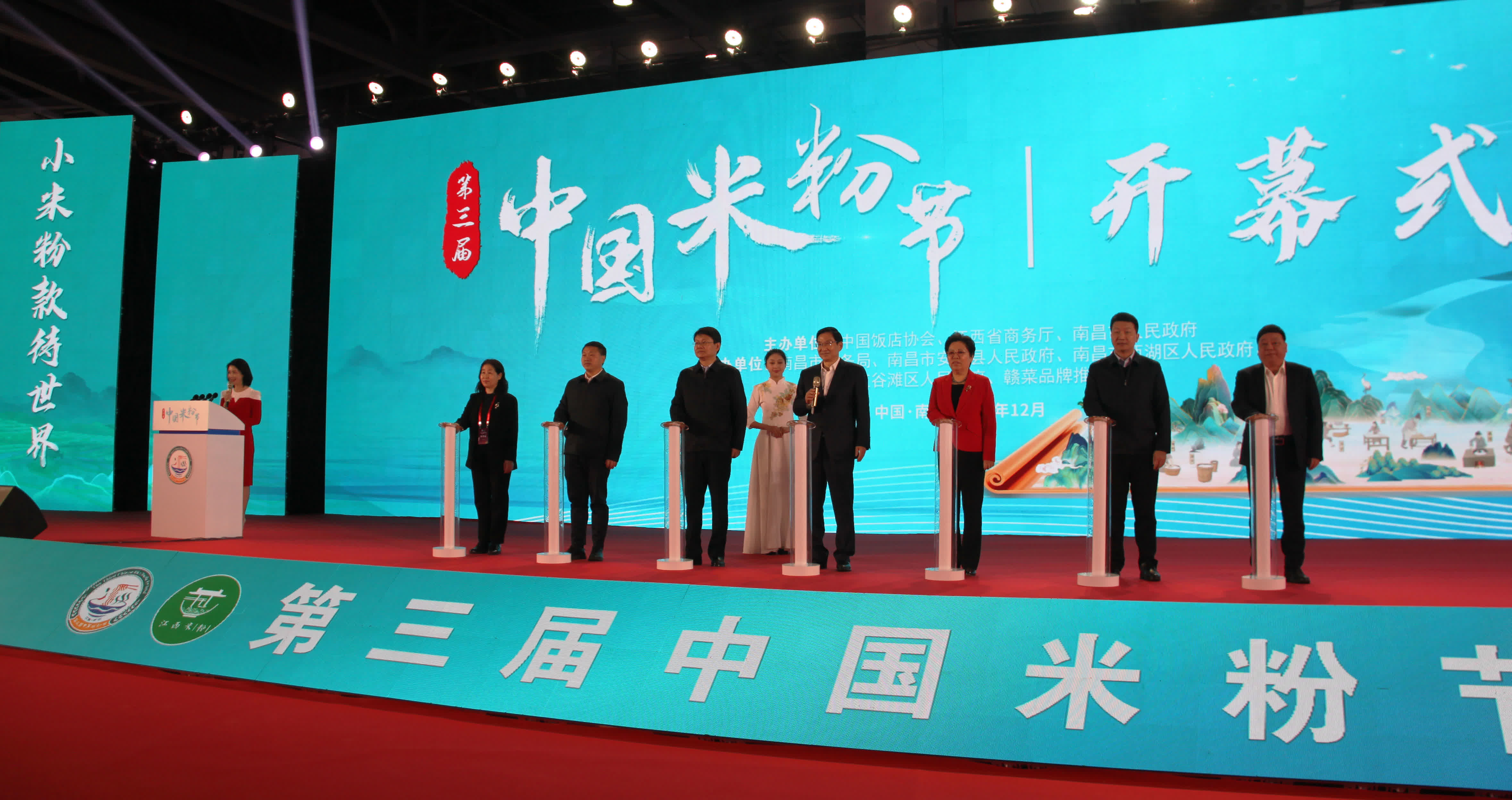 (大公文匯網 記者 黃慧、楊磊)12月8日上午,第三屆中國米粉節在南昌綠地國際博覽中心開幕,江西省政府黨組成員陳小平宣布開幕並巡館。江西省商務廳黨組書記、廳長猶王瑩巡看展覽展示情況,南昌市政府市長萬廣明、中國飯店協會資深會長韓明、江西省商務廳副廳長陳長生、重慶市商務委副主任彭和良分别致辭,國際飯店與餐館協會主席艾迪視頻致辭。