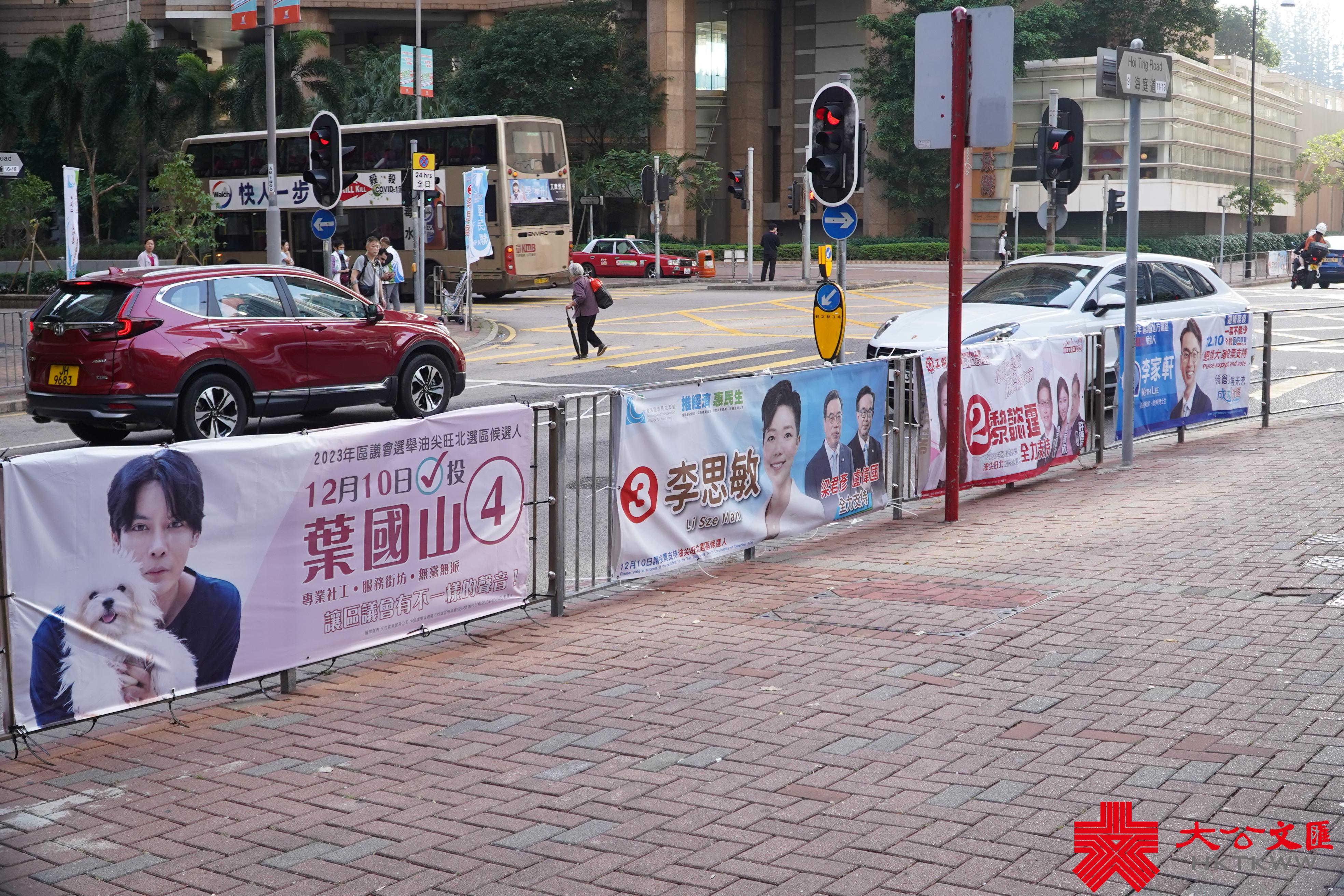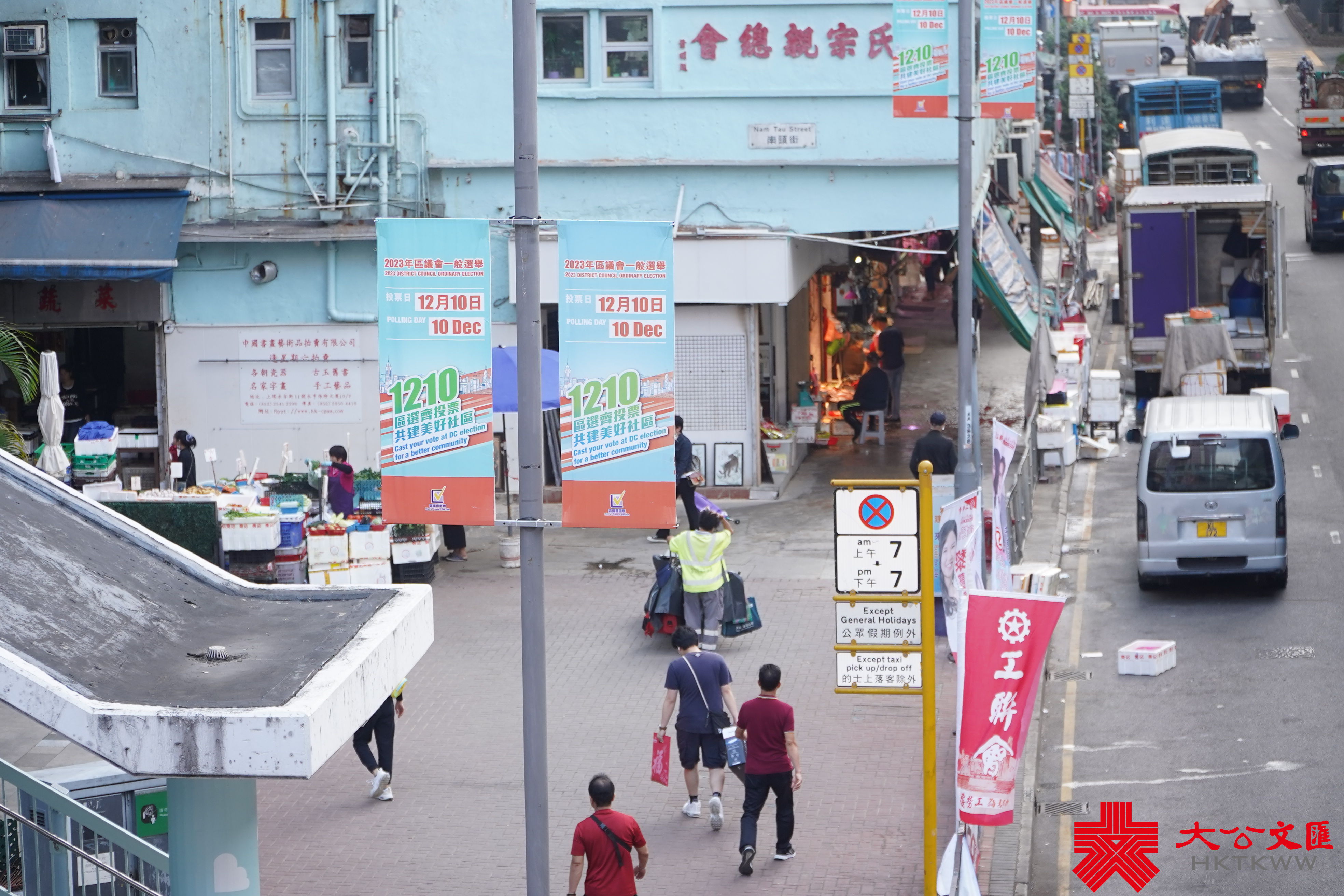(大公文匯全媒體記者 李友理 報道)明日(10日)是2023年區議會選舉投票日,大公文匯全媒體記者今日(9日)走訪油尖旺區,見到街上人流密集,適逢周末,不少市民出街走動。街上關於選舉的宣傳橫額和旗幟隨處可見,亦有不少候選人的義工團隊抓緊最後一日的機會,毫不懈怠,在多個地點設立街站,落力向市民派發政綱和傳單。