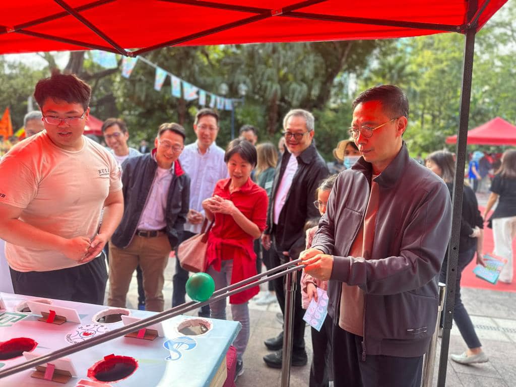 楊潤雄表示,今日康文署花了許多心思設計遊戲,大家見到每個遊戲中,署方也有將地區特色或各區的名字或者與選舉有關的東西盡量放入去,希望無論小朋友或大人參與遊戲活動時,有一個開心的下午。
