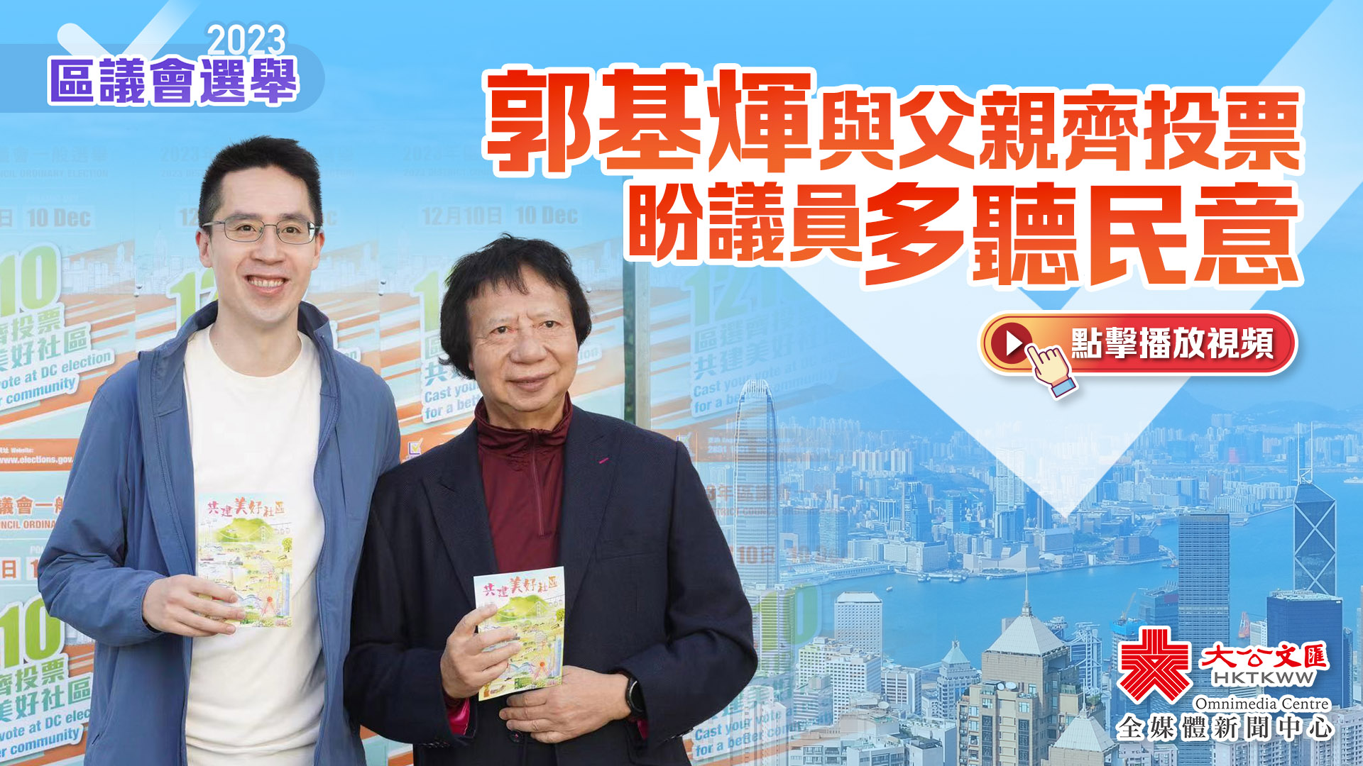 大公文匯全媒體報道,今日(12月10日)是區議會選舉投票日。全國政協委員、新鴻基地產執行董事郭基煇及父親郭炳江今日前往票站投票,並呼籲大家踴躍投票。