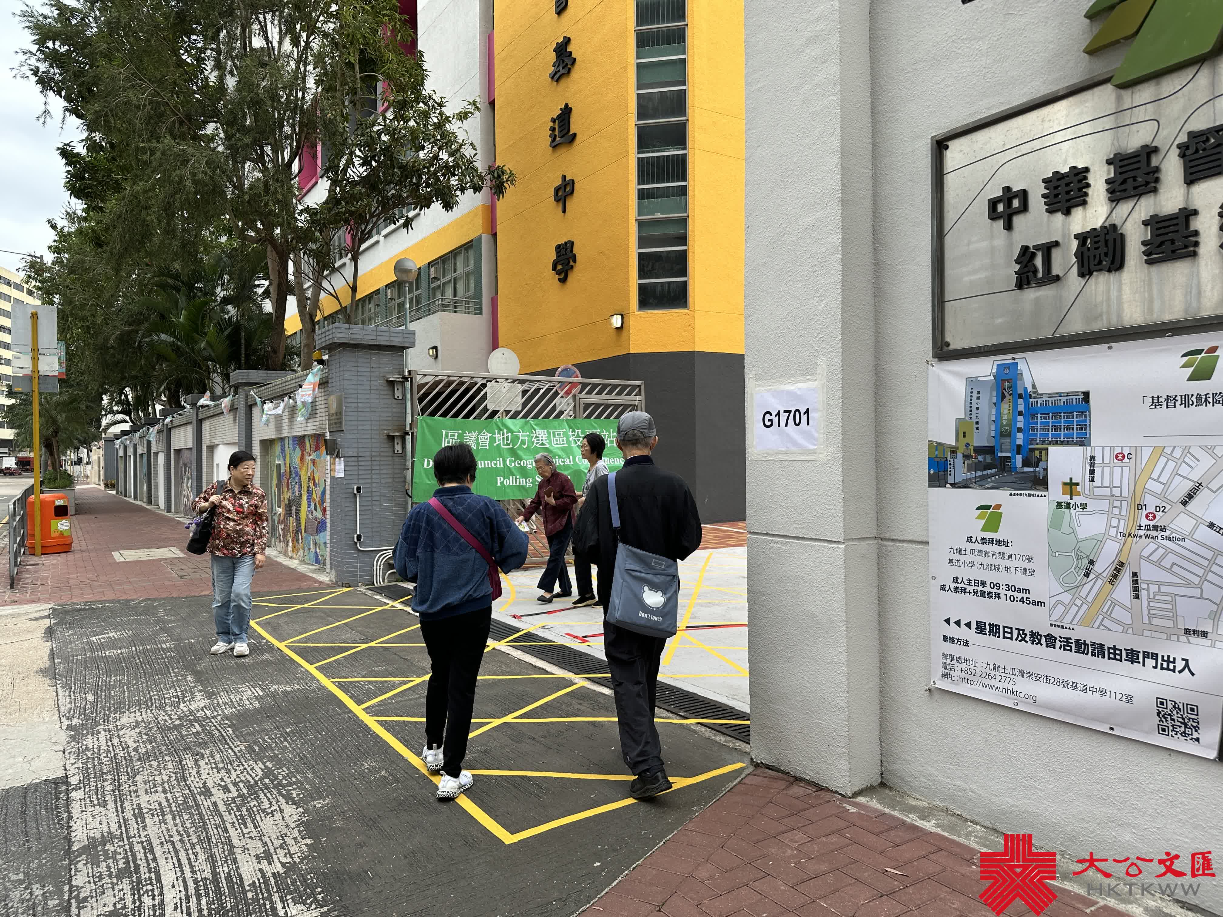 大公文匯全媒體報道,2023年區議會一般選舉今日(12月10日)舉行,全港各區票站一早準備就緒,8時30分開始選民齊齊投票。九龍城北區選舉氣氛熱烈,投票站大排長龍,幾個票站早上最高輪候時間一度達60分鐘。