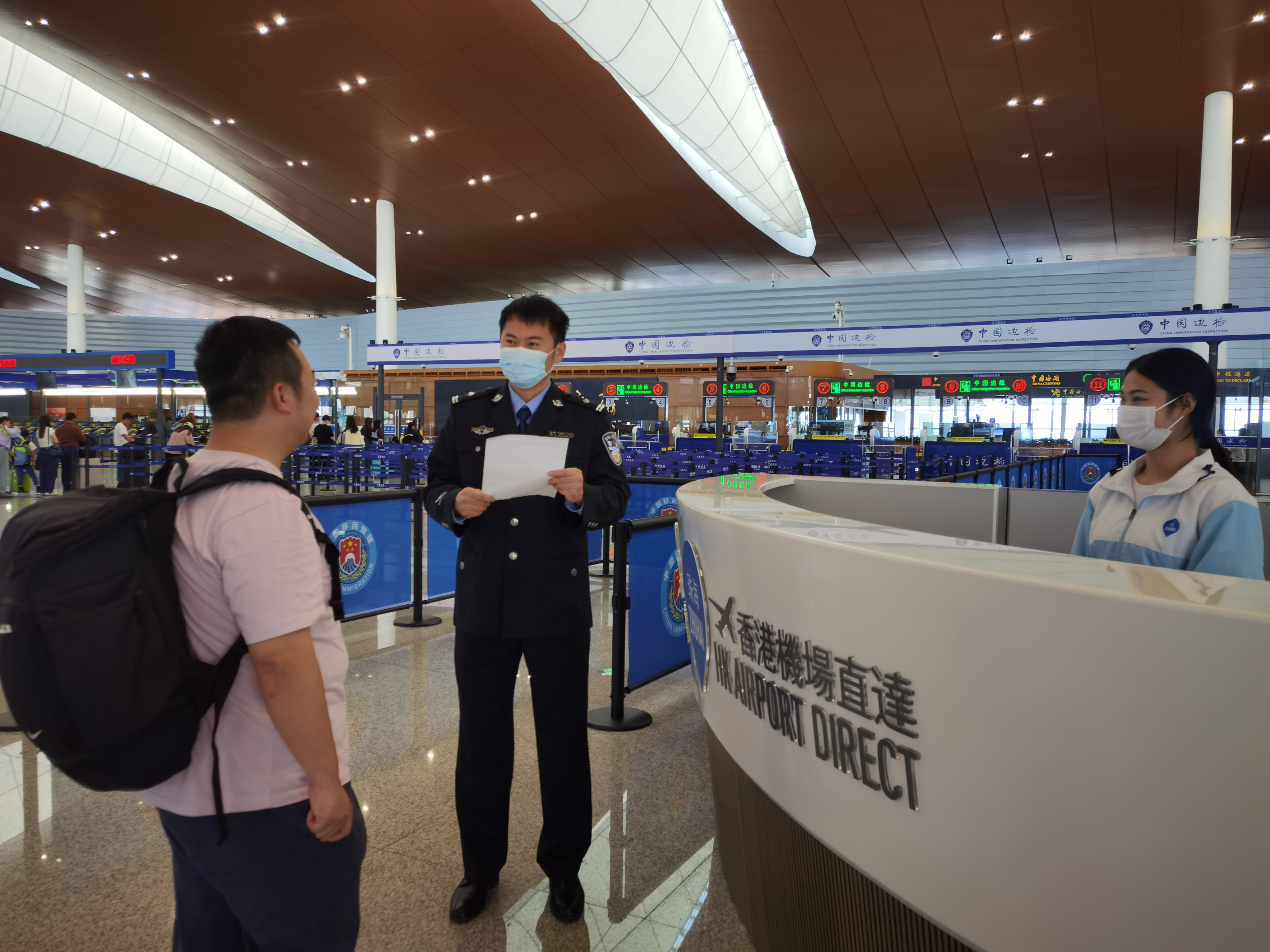 「為確保政策落地後能夠順暢實施,港珠澳大橋邊檢站在珠港出入境方向設置了專用查驗通道,實現『經珠港飛』旅客與普通旅客的區分查驗,以便捷優質的通關服務,充分發揮大橋『一橋連三地』、輻射粵西乃至大西南地區的軸帶作用,助力推動粵港澳大灣區世界級機場群的形成。」港珠澳大橋邊檢站政委林美紅表示。
