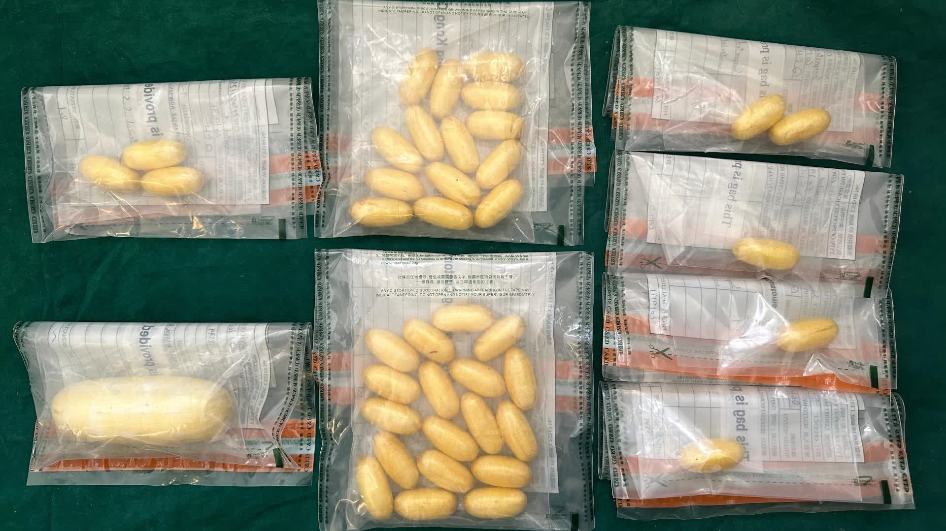 一名42歲的女旅客昨日從埃塞俄比亞阿的斯阿貝巴經多哈飛抵本港,海關人員清關期間懷疑其體內藏毒,經醫院檢查,被捕女子已從體內排出41粒共重約750克的懷疑可卡因,案件明日(11日)在西九龍裁判法院提堂;另一名昨日從馬來西亞吉隆坡抵港的38歲男旅客在清關期間,海關人員在他的寄艙行李內發現49包飲品沖劑內藏有約5公斤的懷疑可卡因。