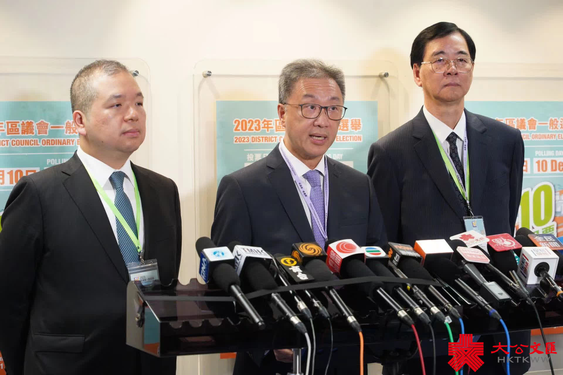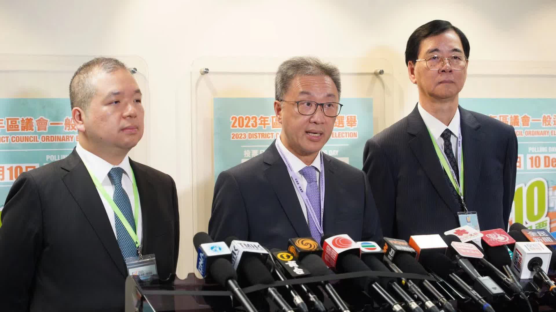 選舉管理委員會主席陸啟康法官、委員石丹理教授和文本立資深大律師見記者,講解選舉投票的最新情況。陸啟康表示,距離地方選區的投票結束還有幾個小時,呼籲市民繼續投票。他今日和團隊視察電子選票以及有需要人士特別投票安排等情況,表示運作順暢。