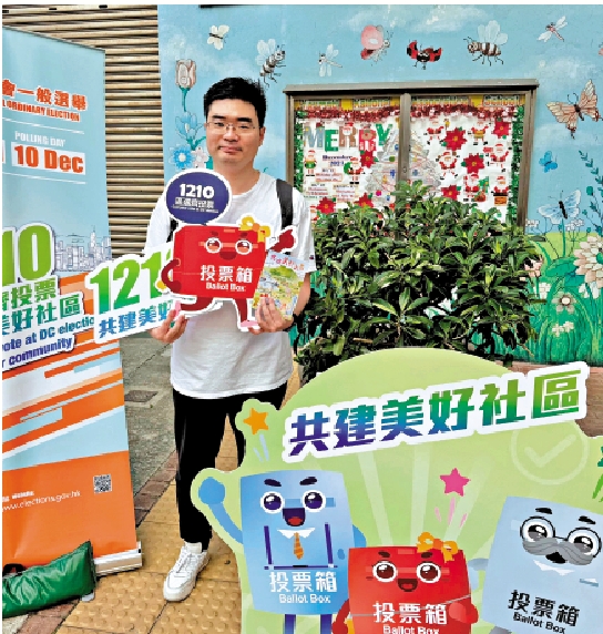 昨日是完善地區治理後首次區議會選舉投票日,選民踴躍投票,其中在港青年、香港政協青年聯會學生事務委員會副主任劉傑是首次參加區議會選舉投票。劉傑提到自己成為選民後,昨天第一次在區議會選舉投票。他期望今次選舉能選出為社區做實事的治理人才,讓他們為建設美好香港做出貢獻,繼續保持香港「一國兩制」制度行穩致遠,繼續保持香港的繁榮穩定,長治久安。