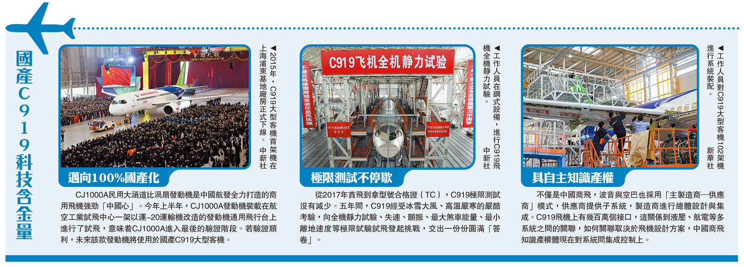 (大公報記者 夏微)作為中國首款按照國際通行適航標準自行研製、具有自主知識產權的大型客機,C919從研製、投產、交付到最終商用,對中國航空製造業發展有着里程碑式的意義。C919成功完成商業首飛的背後,是諸多科技創新的結晶。從機體結構件到如同飛機「大腦」的航電系統,從機頭試驗到機尾複合材料應用……彰顯了中國航空工業的整體科技實力和「中國智慧」,其所採用的新技術、新材料、新工藝更是帶動了中國民用航空產業鏈、價值鏈、創新鏈的形成。