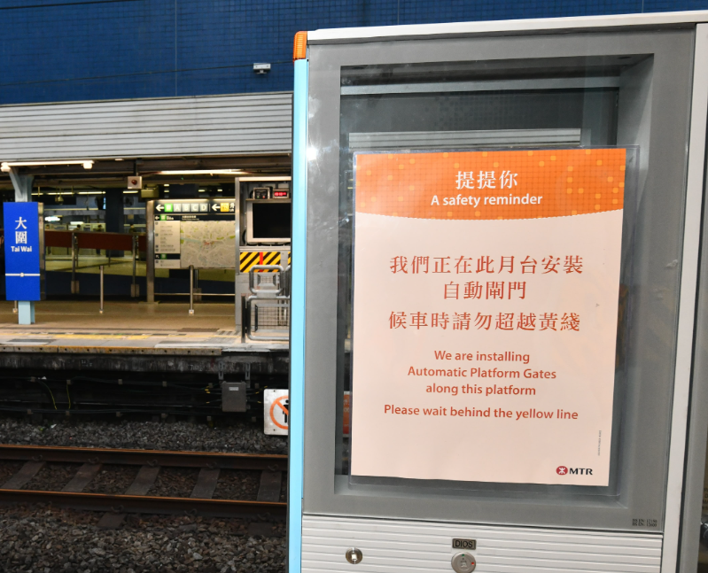 大圍站是緊接落馬洲及上水站後展開月台閘門工程的車站,目前正進行工程的還有上水和大埔墟站。港鐵指出,有關工程比原訂2024年的時間表提前展開。