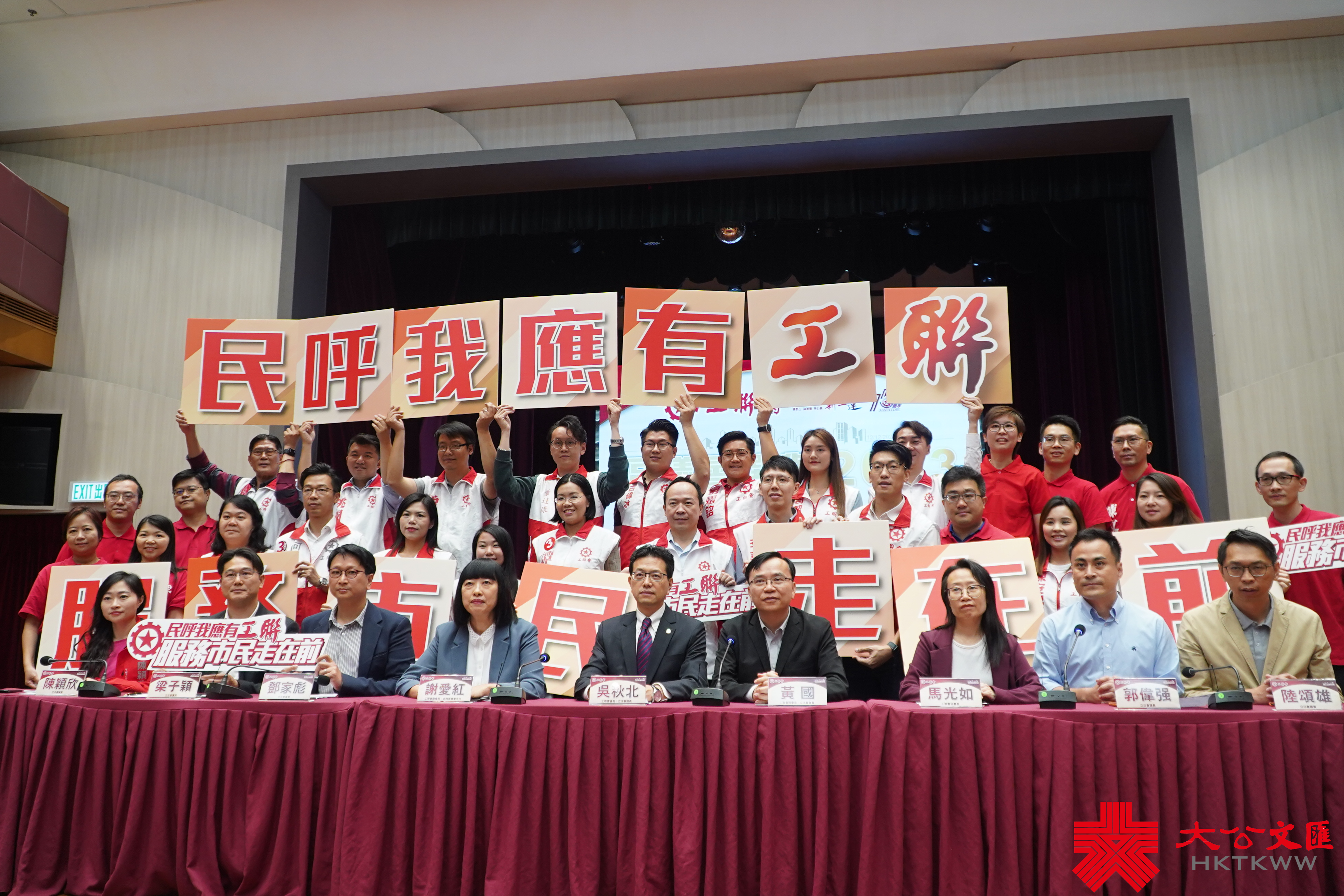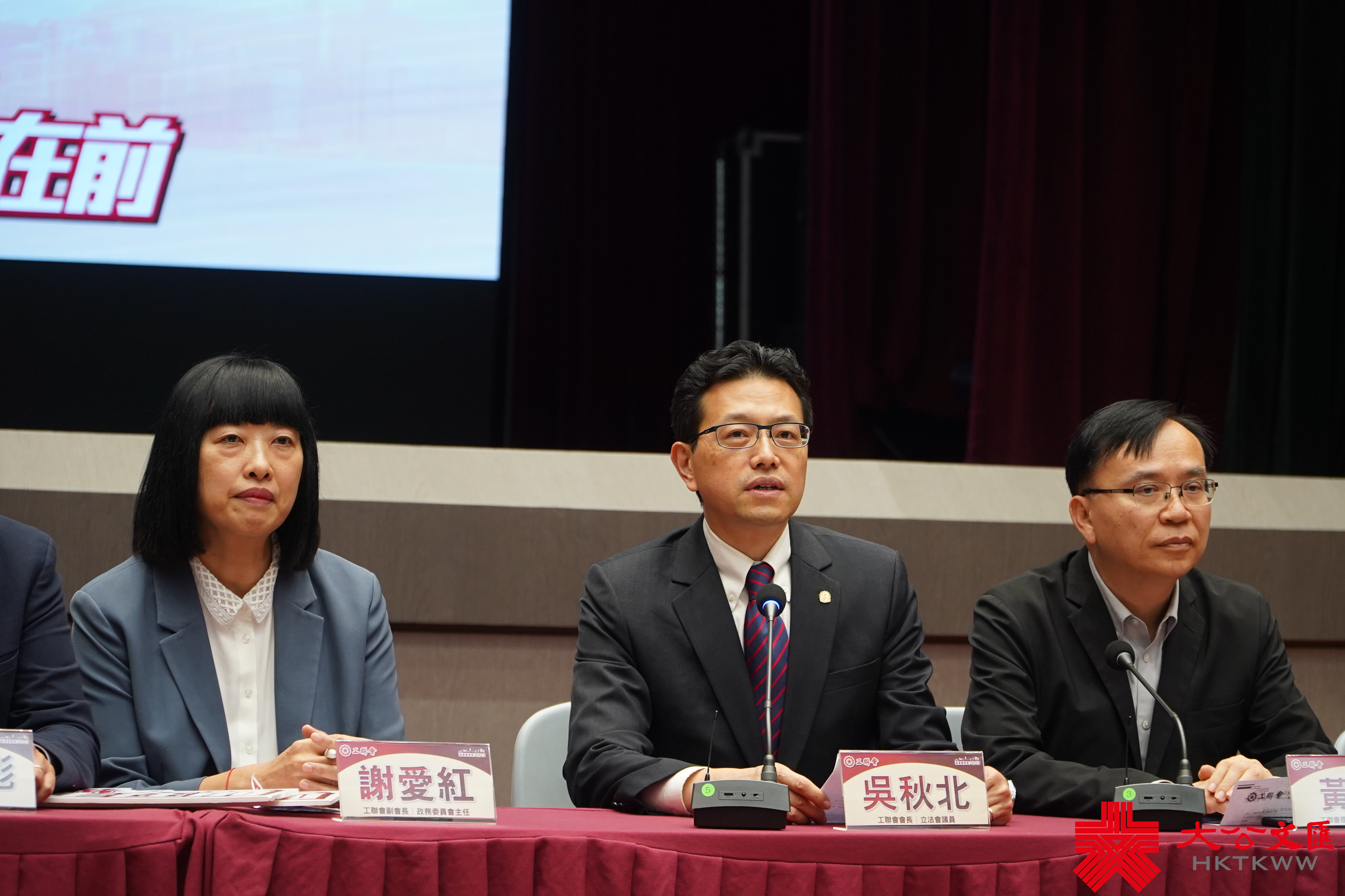 (大公文匯全媒體記者 李友理)完善地區治理後的首次區議會選舉日前成功舉行,工聯會今天(12日)舉行記者會報告選舉情況,工聯會會長吳秋北、工聯會理事長黃國、工聯會副會長兼政務委主任謝愛紅、工聯會秘書長馬光如及當選區議員出席。