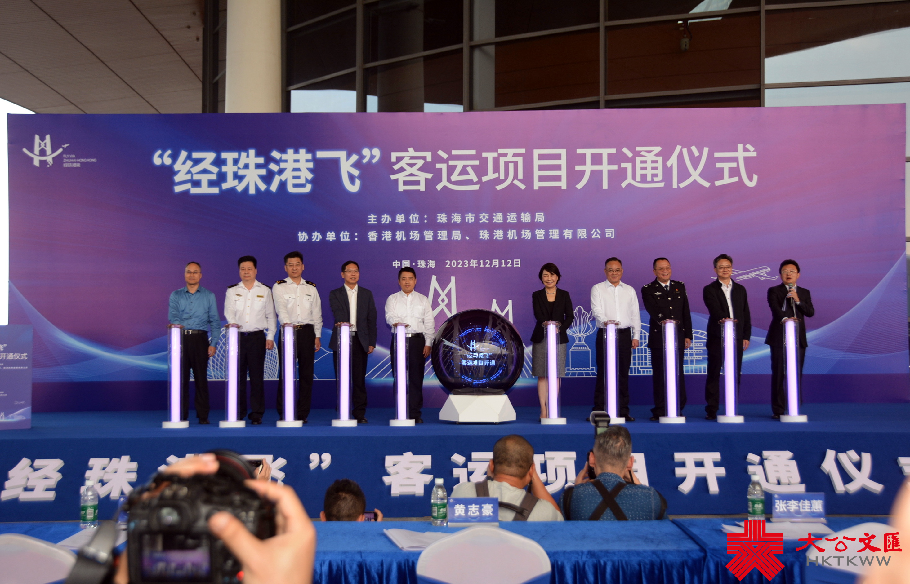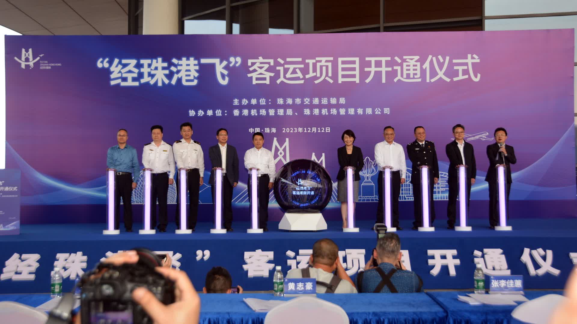「經珠港飛」客運項目開通儀式12日在港珠澳大橋珠海公路口岸送客平台舉行,珠海市委副書記、市長黃志豪等出席了儀式。珠海市委常委、組織部部長、市政府黨組成員覃春致辭表示,「經珠港飛」客運項目的開通,是珠海市與香港機場管理局全面深化合作的可喜成果,是支持香港更好融入國家發展大局的有力舉措。該項目的實施,將為珠港兩地雙向引流,促進兩地機場優勢互補與協同發展,打造粵港澳大灣區機場群融合發展的典範。