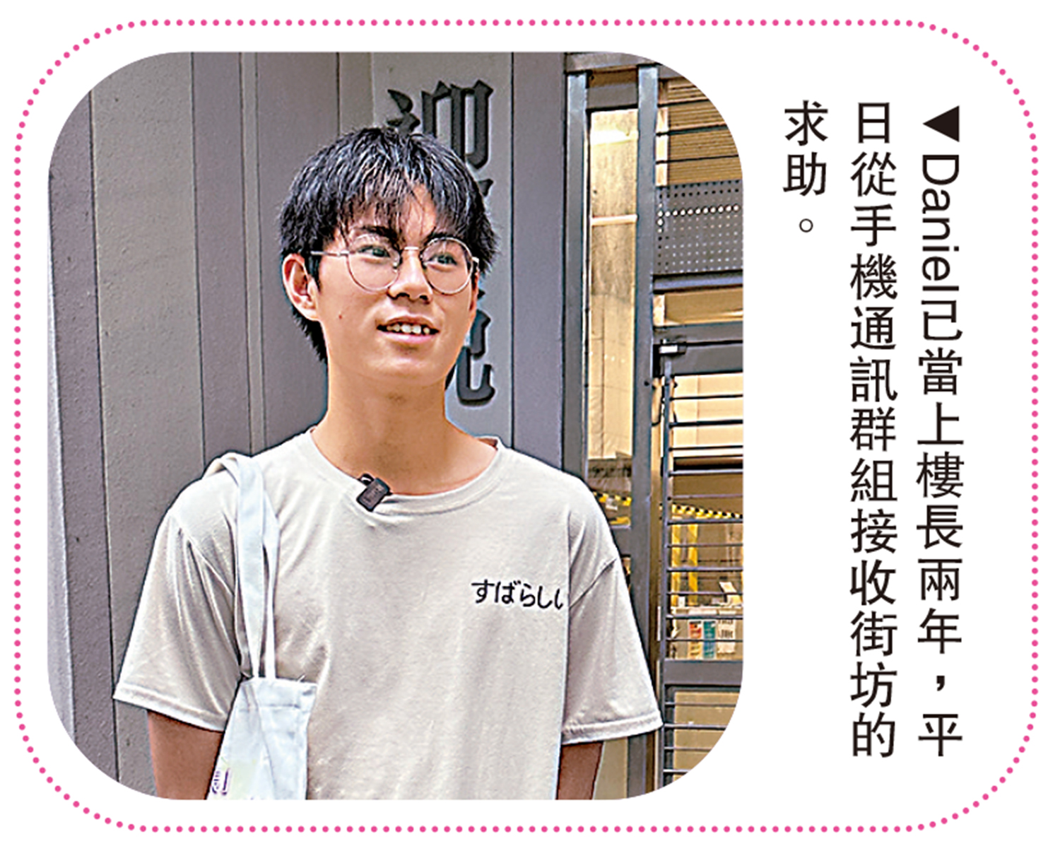 「我都可以為這個社區付出,有貢獻!」年紀輕輕的中六生Daniel也有2年的樓長經驗,他的手機內有多個鄰里群組,方便發送社區內各種訊息之餘,亦會從群組中接收街坊求助。談到服務街坊心得,Daniel雀躍地說:「可以多些留意身邊的鄰居,了解有什麼可幫助。」沒想到一個青春少年卻胸懷慈愛之心,他更透露成為樓長認識了不同年齡的鄰居,有些更成為好友。