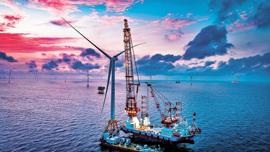 還值得關注的是,該項目創新研發了具有新型過渡段結構的深水區導管架基礎,成功破解大兆瓦海上風電機組基礎結構體系設計關鍵難題,並採用了多種大容量新型風機,其中包括世界單機容量最大的抗颱風半直驅12兆瓦海上風電機組,以及中國首台14兆瓦海上風電機組,其125米的風機葉片為中國最長。