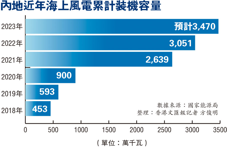 (香港文匯報記者 方俊明 廣東報道)粵港澳大灣區首個百萬千瓦級海上風電項目投產!12日,中國廣核集團(簡稱「中廣核」)惠州港口100萬千瓦海上風電場全容量併網,年發電量約30億千瓦時,標誌着灣區首個百萬千瓦級海上風電項目全面建成啟用。該項目創新研發了具有新型過渡段結構的深水區導管架基礎,採用世界單機容量最大的抗颱風半直驅12兆瓦海上風電機組,以及中國首台14兆瓦海上風電機組;同時還刷新了中國行業內多項紀錄,為粵港澳大灣區發展提供清潔能源助力。