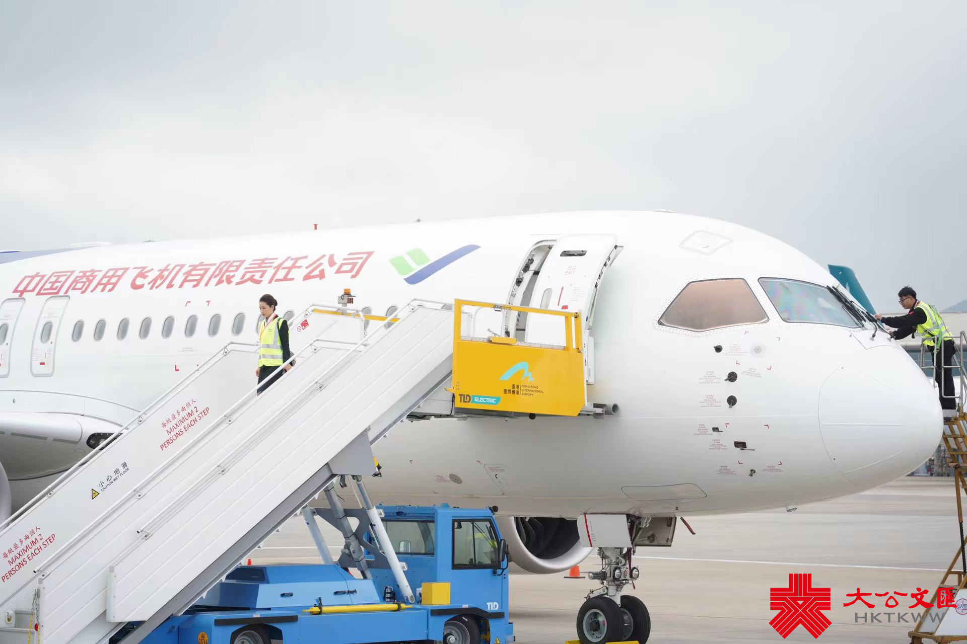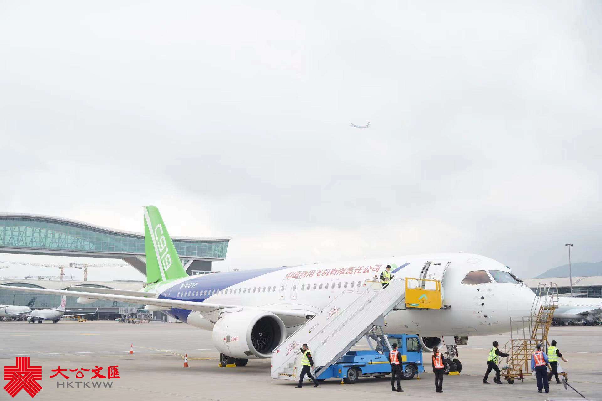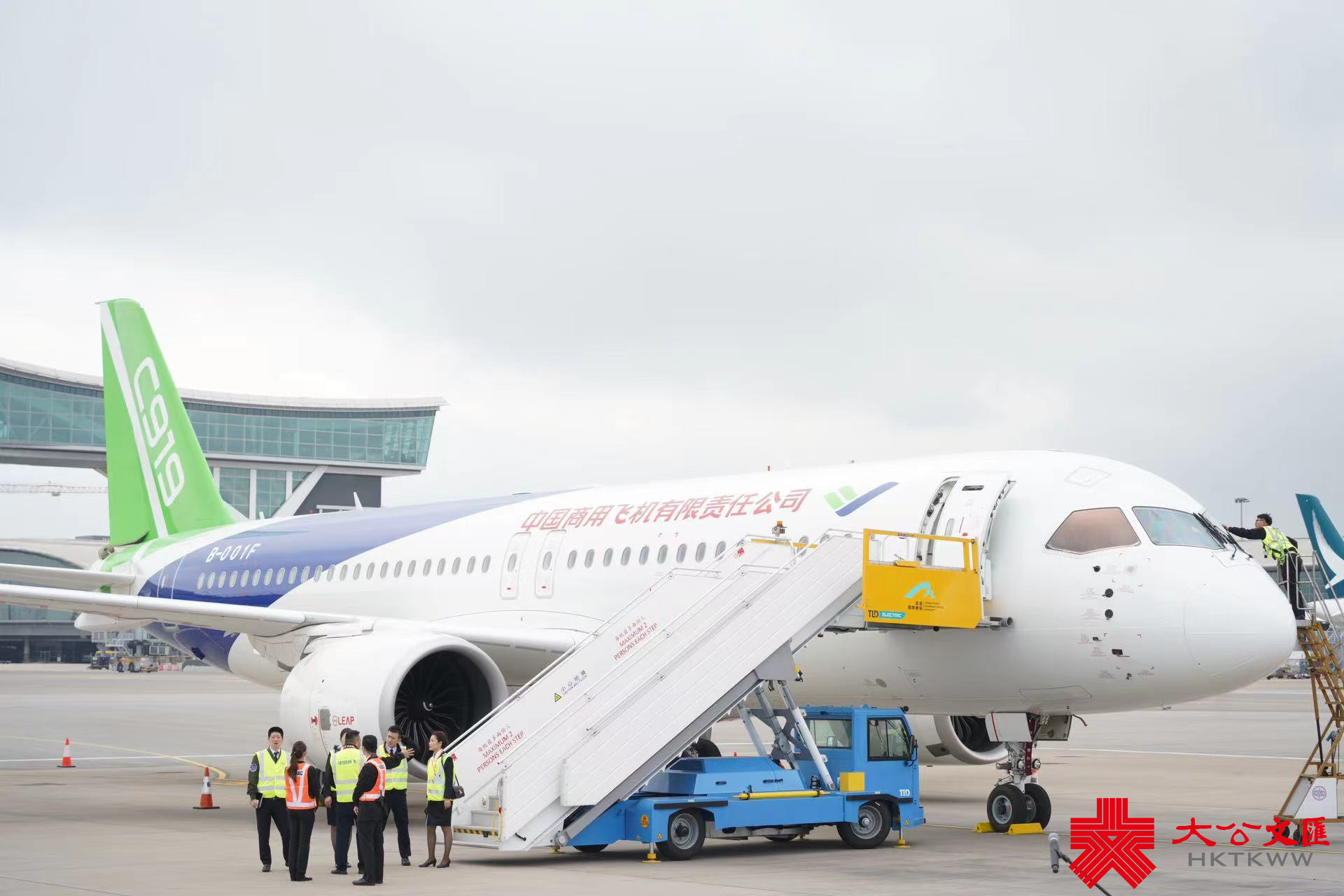 大公文匯全媒體報道,中國自主研製的大飛機C919和支線客機ARJ21昨日(12日)由上海飛抵香港,若天氣情況許可,C919於周六(16日)將翱翔維多利亞港上空作飛行演示,全港市民熱切期待一睹大飛機風采。今日(13日),民航處及機場管理局將於香港國際機場停機坪聯合舉行歡迎儀式。