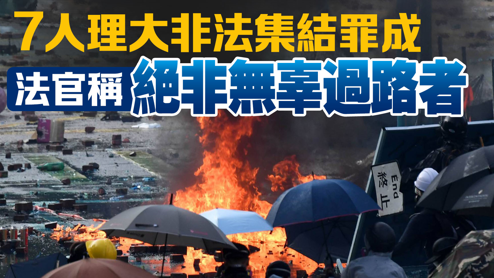 大公文匯全媒體報道,2019年11月18日,一批攬炒狂徒在油尖旺一帶非法集結,企圖「營救」被包圍在理大校園內的黑暴分子。其間警方在尖沙咀科學館附近拘捕逾百人,其中9人被控非法集結罪,當中兩男認罪,餘下7人不認罪受審。經審訊後,暫委法官黃士翔昨日在區域法院裁定7人罪名成立。法官判刑時表示,被告並非被困於非法集結中的無辜過路者,而是有備而來,準備參與在場的非法集結,案件押後至明年1月判刑。