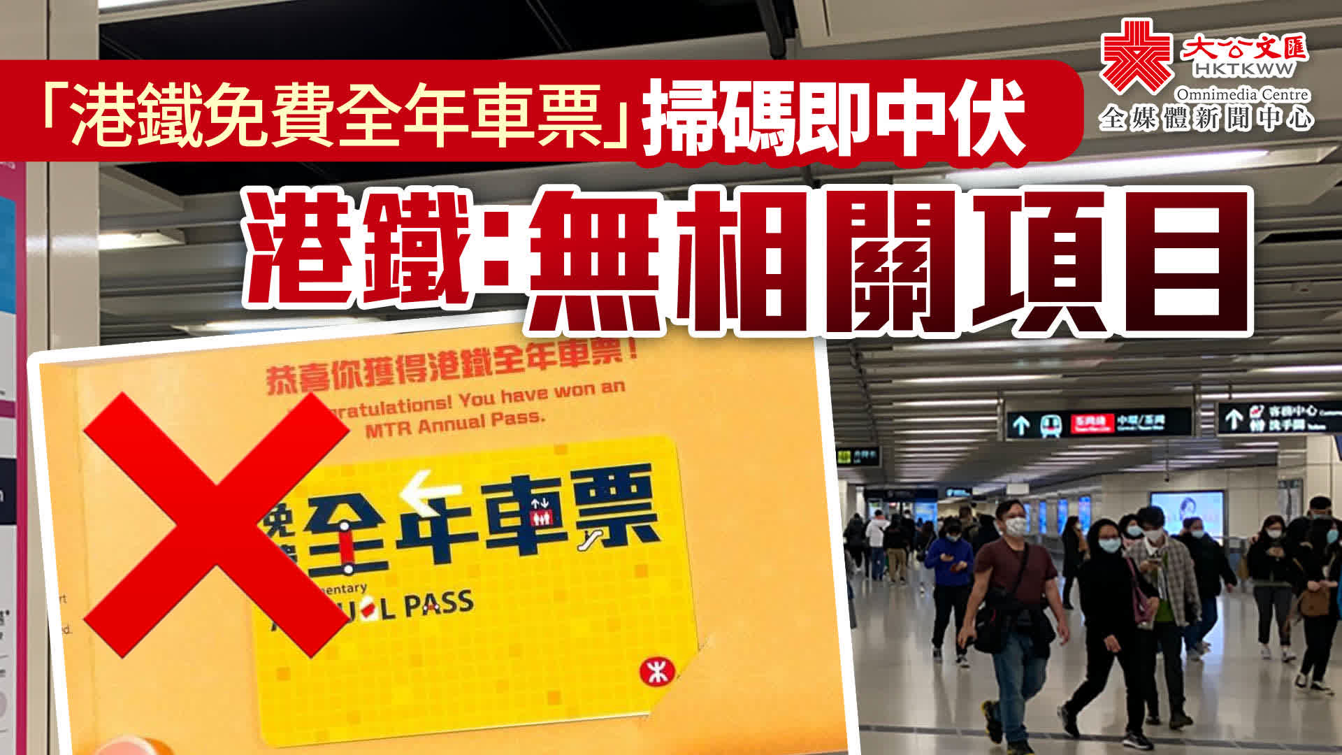 港鐵今日(13日)表示,公司留意到社交媒體有人流傳訊息,表示有人假冒港鐵公司寄出港鐵免費全年車票,邀請收件人掃描二維碼去啟動全年車票。港鐵公司強調,沒有任何經郵寄方式送出免費全年車票並要求收取車票的人士使用二掃碼掃描的項目。同時,港鐵公司近日並無發出任何免費全年車票。