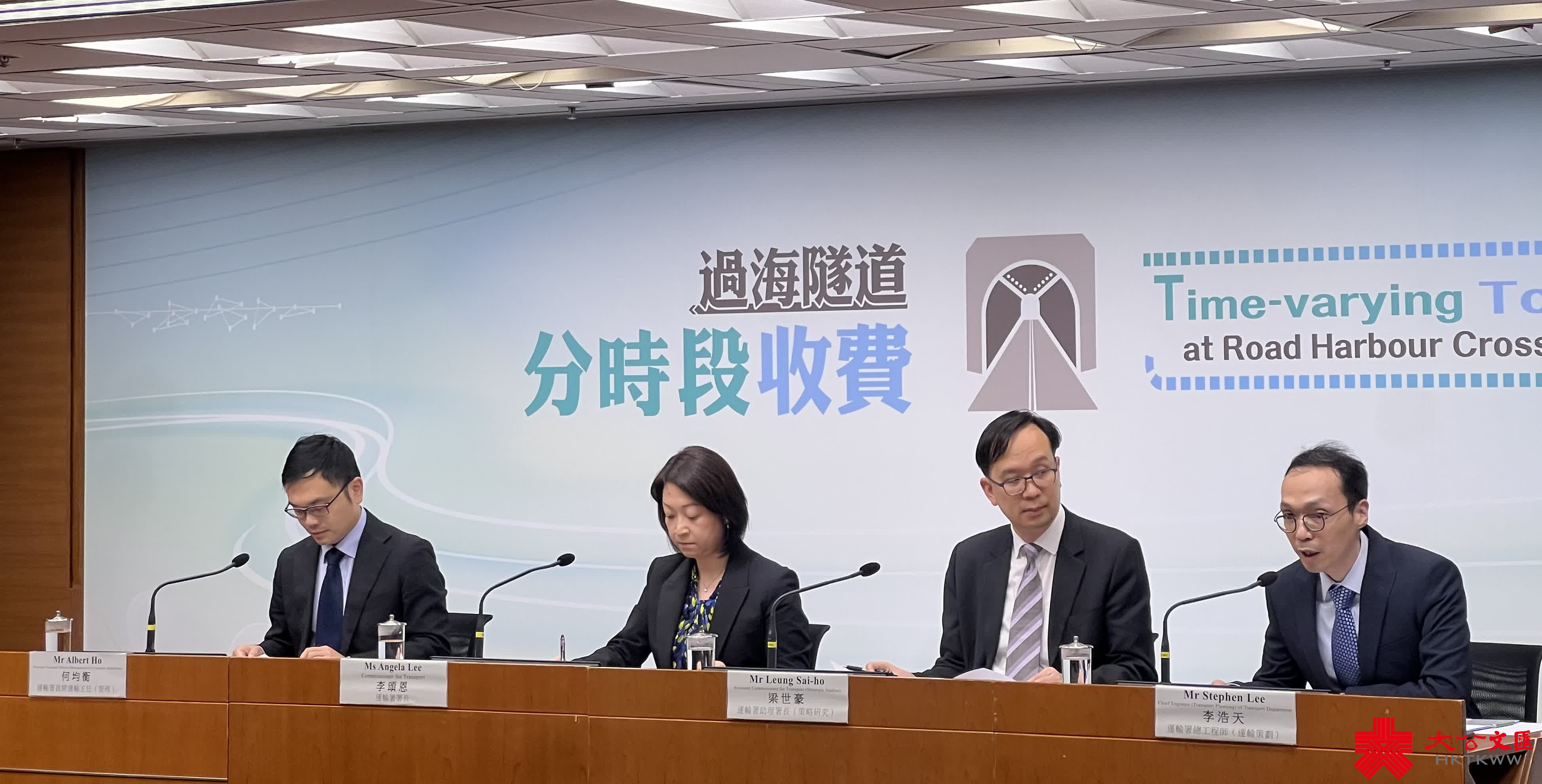 (大公文匯全媒體記者 周傾芫)運輸署今日(13日)提醒市民,三條過海隧道:即西區海底隧道(西隧)、海底隧道(紅隧)、東區海底隧道(東隧)將於12月17日上午5時起分時段收費,駕駛者可如常直接駛過隧道,透過「易通行」繳交隧道費。運輸署署長李頌恩、運輸署助理署長梁世豪、運輸署總工程師李浩天、運輸署首席運輸主任何均衡出席新聞發布會。
