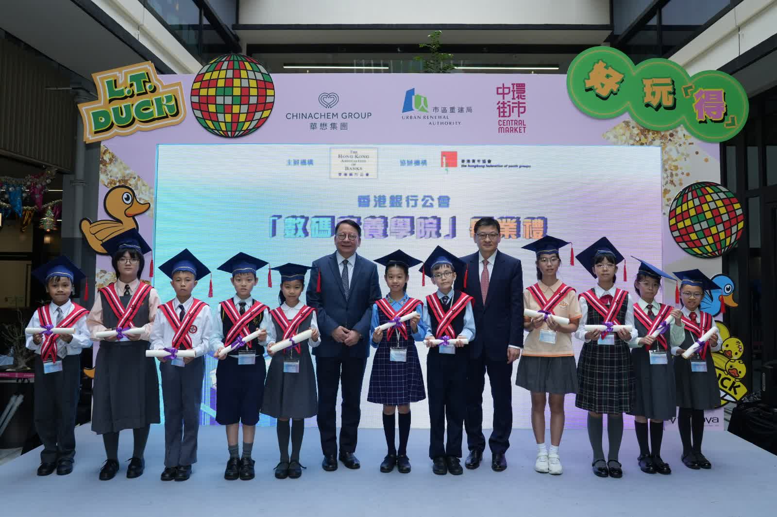 香港銀行公會(簡稱:銀行公會)主辦、香港青年協會(簡稱:青協)協辦的「數碼素養學院」畢業禮暨「長幼數碼共融社區服務計劃」嘉年華啟動儀式,今日在中環街市舉辦。香港特別行政區政府政務司司長陳國基、銀行公會主席、中國銀行(香港)副董事長兼總裁孫煜及香港金融管理局署理副總裁區毓麟主禮。