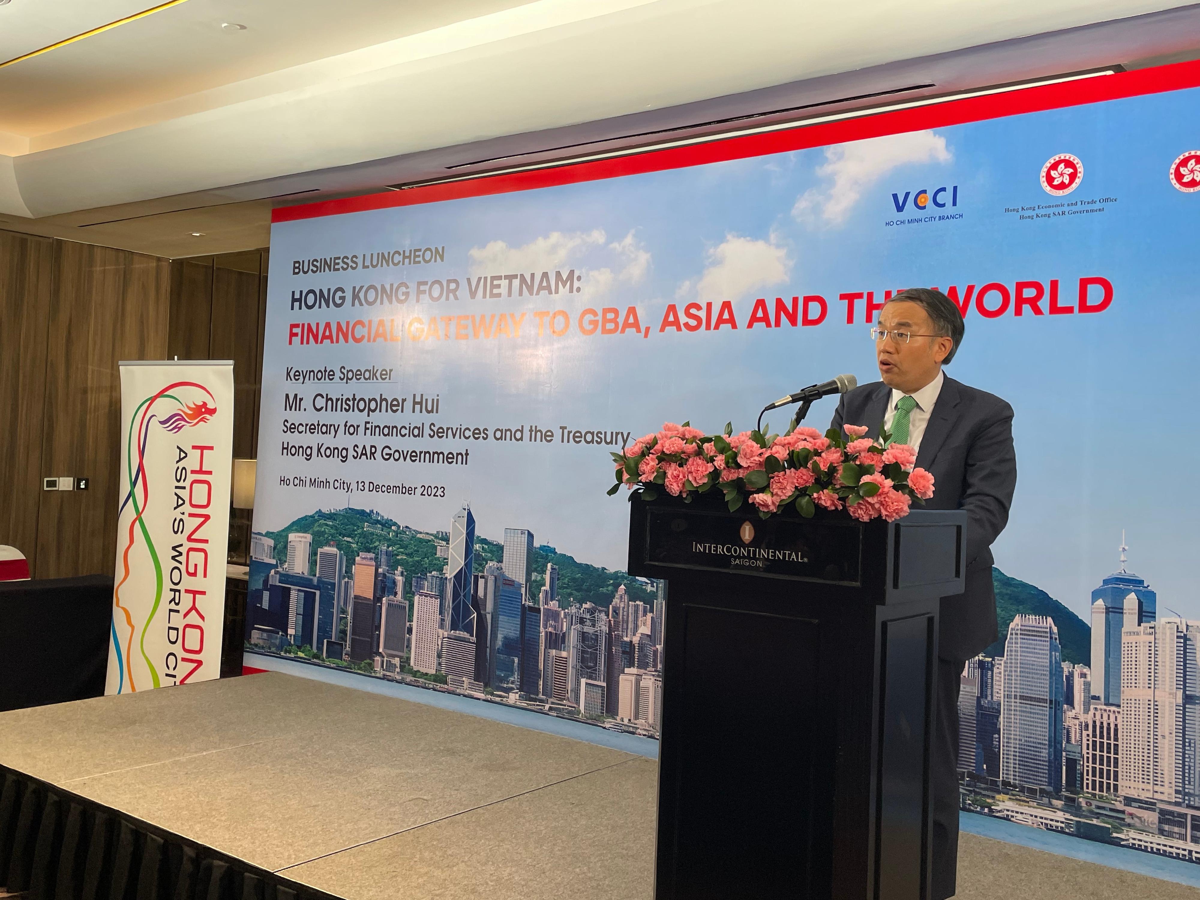 大公文匯全媒體報道,財經事務及庫務局局長許正宇今日(13日)展開越南的訪問行程。許正宇在胡志明市香港駐新加坡經貿辦和越南工商總會合辦的商務午餐會上致辭時從聯繫人角色、人民幣資產配置和應對氣候變化投入三方面,概述香港可提供的金融服務,藉此與越南締造更多合作機會。他明日(14日)將啟程前往河內,繼續越南的訪問行程。