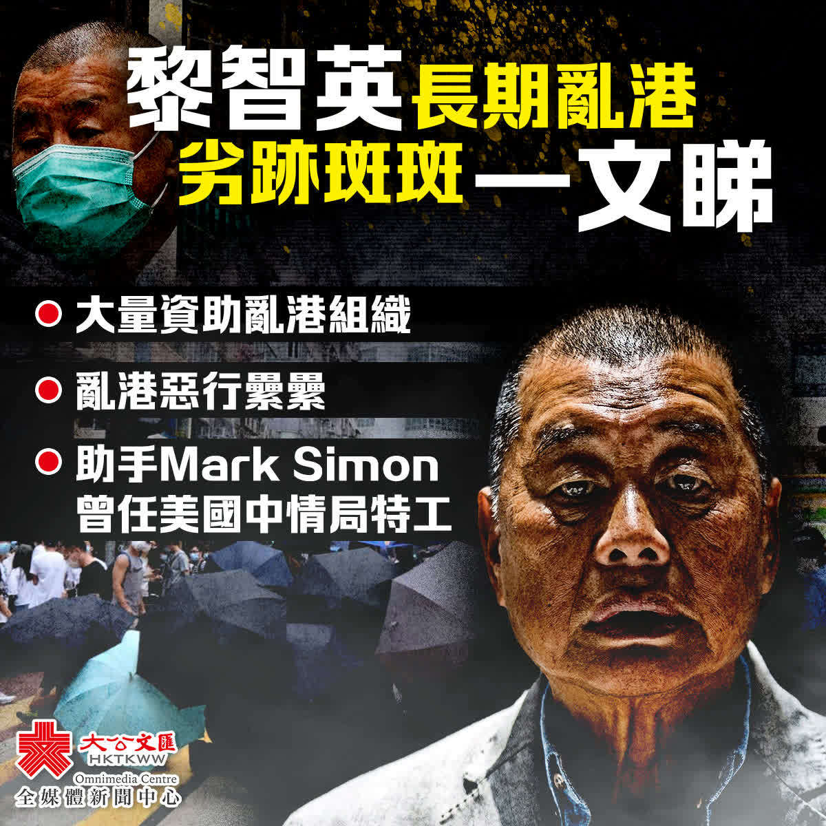 大公報報道,亂港黑手、壹傳媒創辦人黎智英劣跡斑斑,其創辦的《蘋果日報》一直為反中亂港分子充當喉舌,備受批評。此外,他長期支持反中亂港勢力,並向他們提供亂港資金。