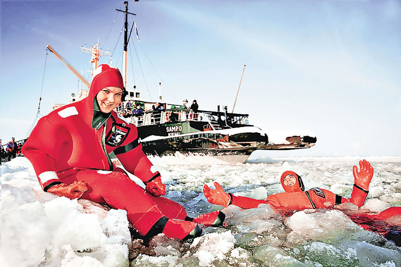 芬蘭的三寶號(Sampo)是全球唯一一艘觀光破冰船,至今已有逾40年載客歷史,長75米、重3,540噸,可容納150人,在波斯尼亞灣北部結冰的水域行駛,船程約4小時。破冰船以圓形的船頭滑到冰上然後以自身的重量壓碎冰塊,過程非常壯觀。遊客更有機會穿上特製的防水保暖橡皮衣一嘗浮沉冰海的滋味,是畢生難忘的體驗。