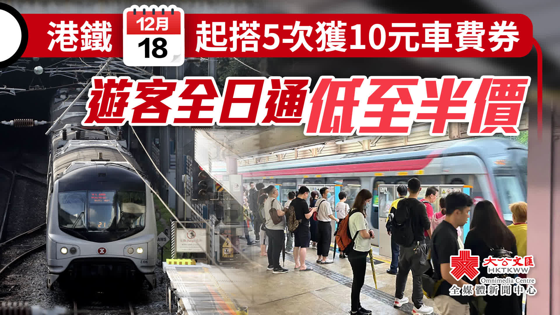 大公文匯全媒體報道,港鐵為鼓勵本地消費及刺激經濟,將於12月18日起推出期間限定的多重精彩禮遇,包括本地乘車禮遇、港鐵商場和車站商店優惠券,以及為內地旅客提供旅客全日通折扣優惠。港鐵亦會由周日(17日)起加強列車服務,平安夜及新年除夕夜會通宵行車,為本地市民及旅客出行及消費提供便利。