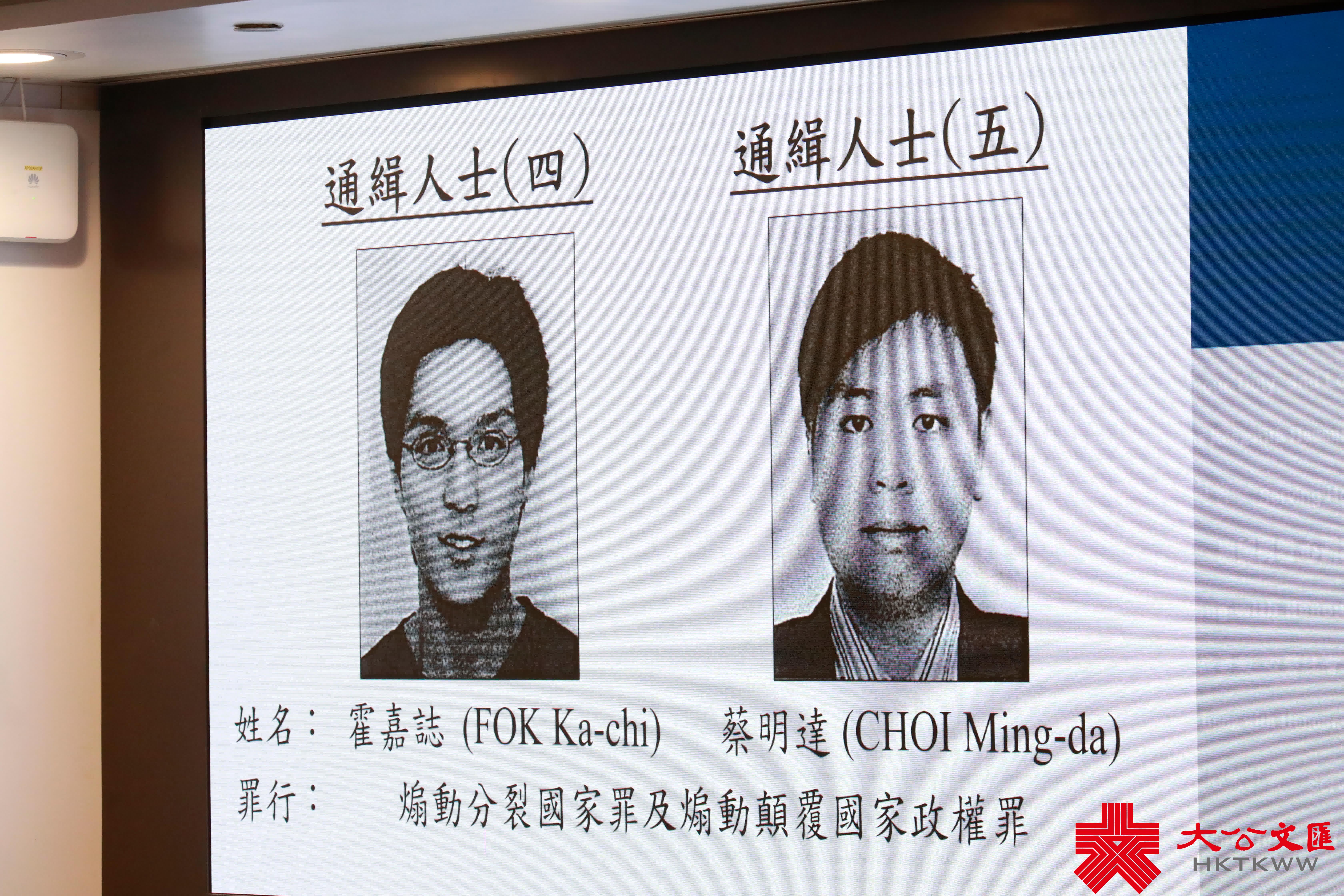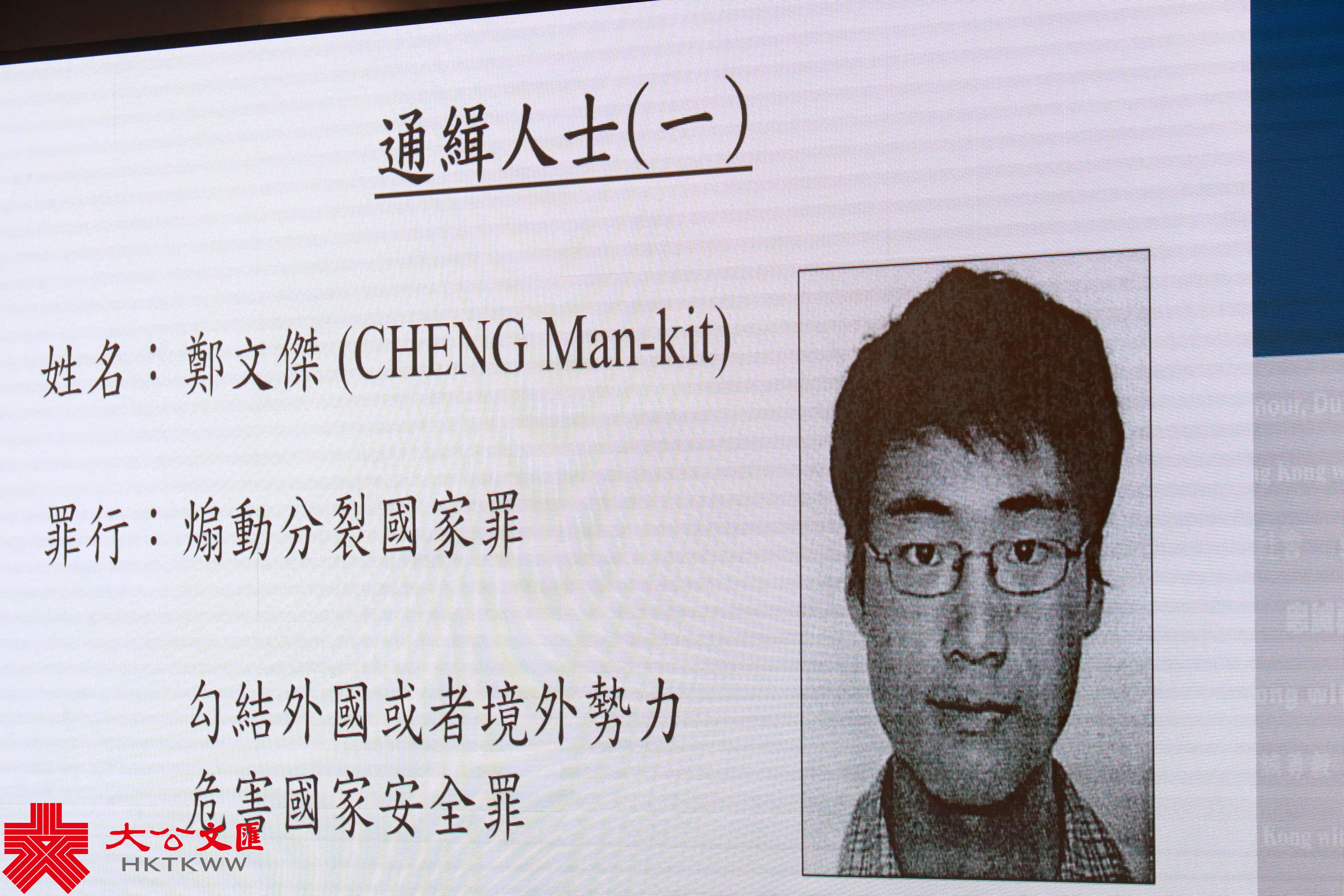 大公文匯全媒體報道,警務處國家安全處今日(14日)舉行記者會,國安處總警司李桂華公布,再懸紅通緝5名潛逃海外人士,包括鄭文傑、許穎婷、邵嵐、蔡明達、霍嘉誌等5人。