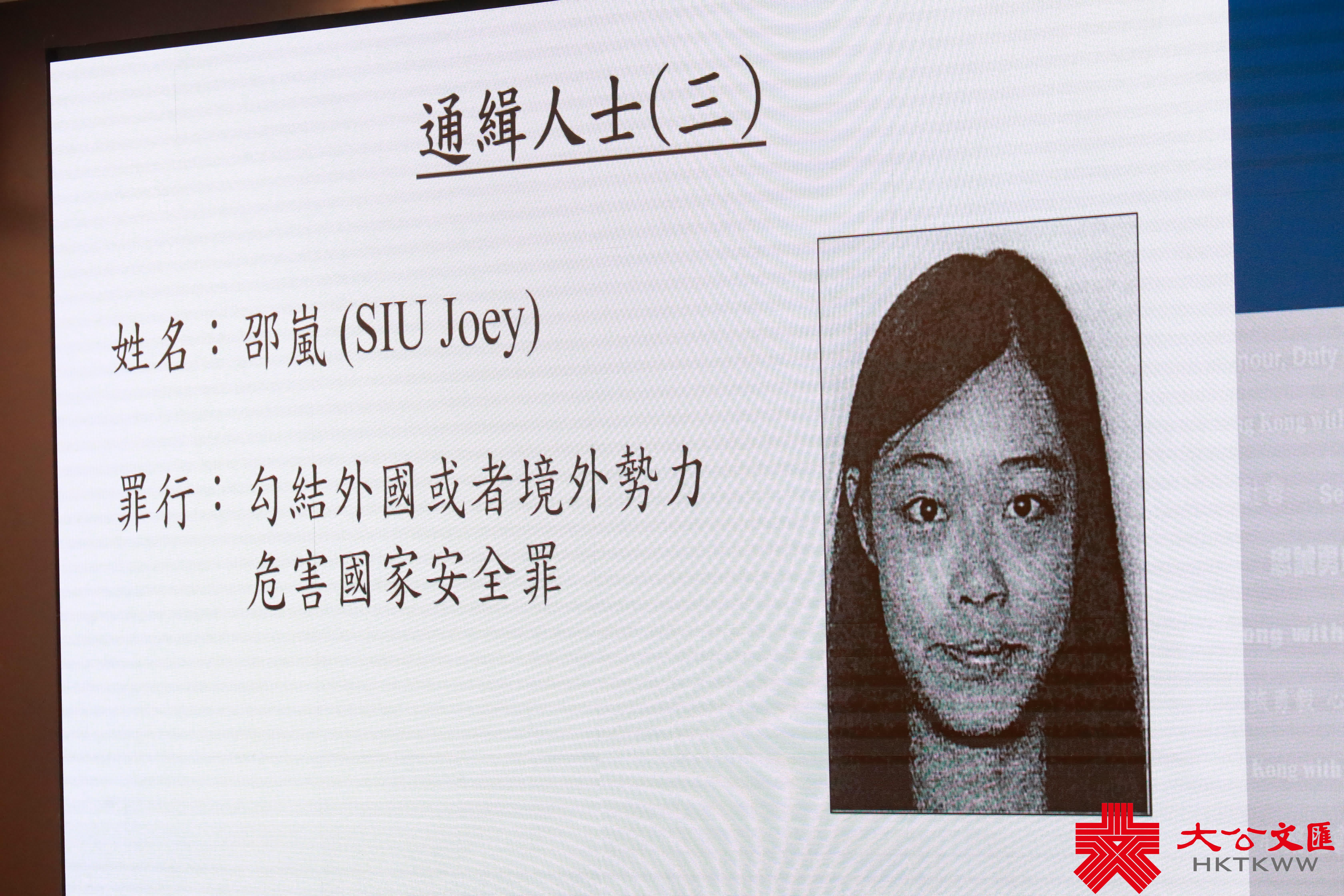 24歲女子邵嵐,同樣涉嫌干犯香港國安法第29條勾結外國或境外勢力危害國家安全罪。案情指,邵嵐由2020年10月至2023年7月期間,多次透過不同平台及形式,請求外國對中華人民共和國及香港特別行政區官員,包括司法人員進行「制裁」封鎖,並採取其他敵對行為。
