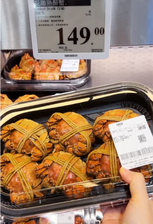 特別是皇庭廣場内的「盒馬鮮生」超市,早上堆積如山的大閘蟹,因售價108元4隻,吸引港人瘋狂掃貨,到中午時分已被掃得七七八八。
