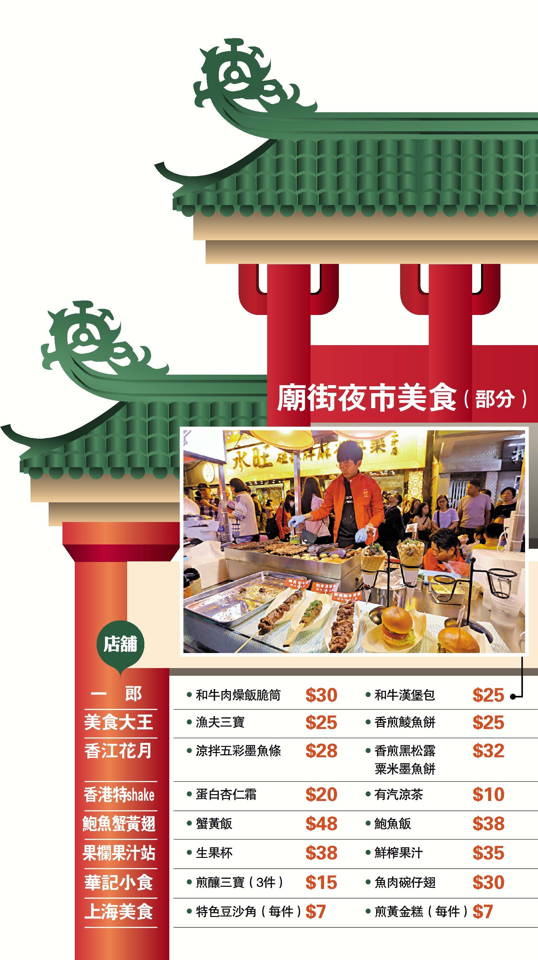 廟街夜市的不少檔戶都表示檔戶標價親民,大公報記者於夜市開鑼首日,實測用100元可以吃到些什麼。走遍整個夜市,從和牛飯到小食、甜品、再加飲品,吃盡5種美食,裝滿一肚,只用了91元。