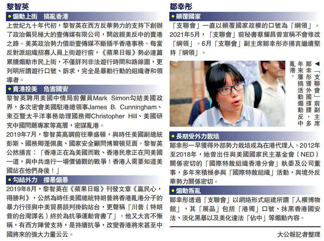 黎智英鄒幸彤惡行纍纍